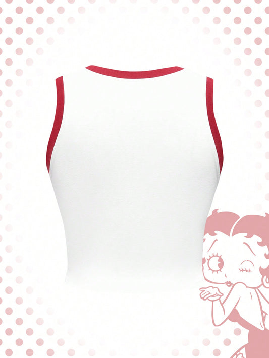 Betty Boop | ROMWE Camiseta de tirantes de ocio para mujer con impresión de personajes de dibujos animados y texto, verano, escuela