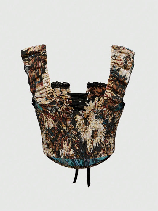 ROMWE Top ajustado para mujer con diseño envolvente floral vintage