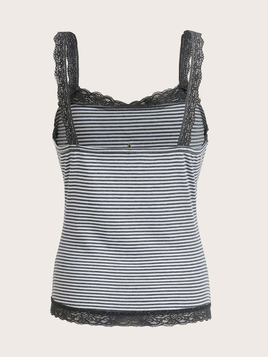 ROMWE Top de tirantes versátil con patchwork de encaje, rayas y bordado de estrellas