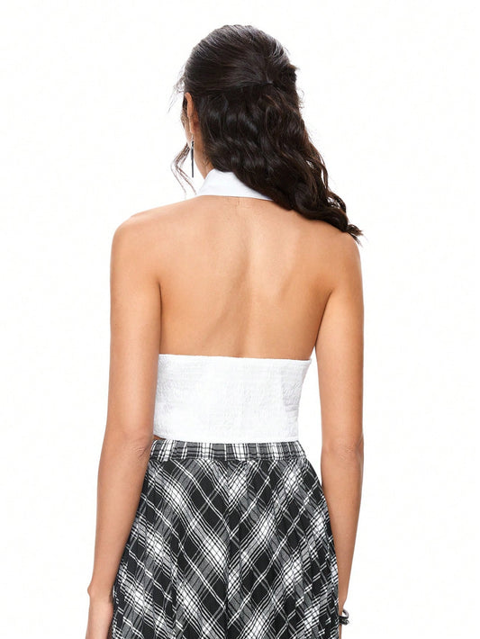ROMWE Avant Crop top mujer sexy de moda con escote halter y atar en la espalda