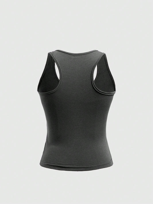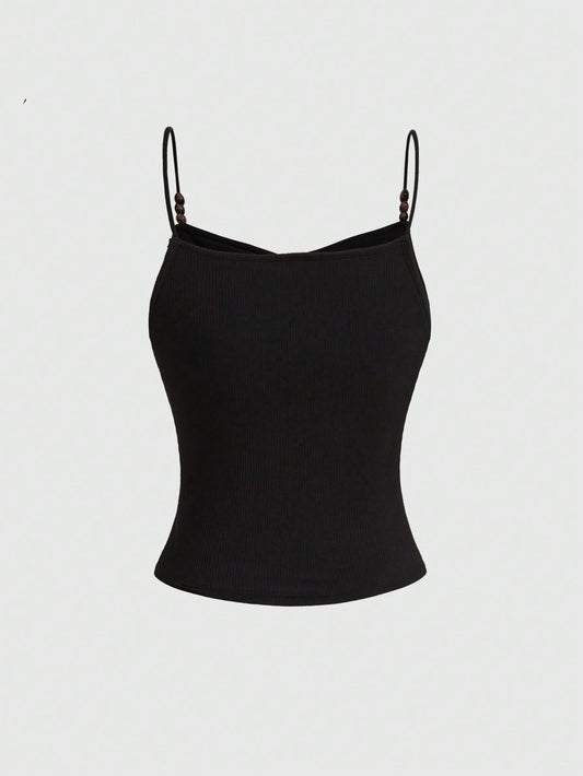 ROMWE Goth Top de tirantes negro ajustado de verano con fruncidos y cuentas