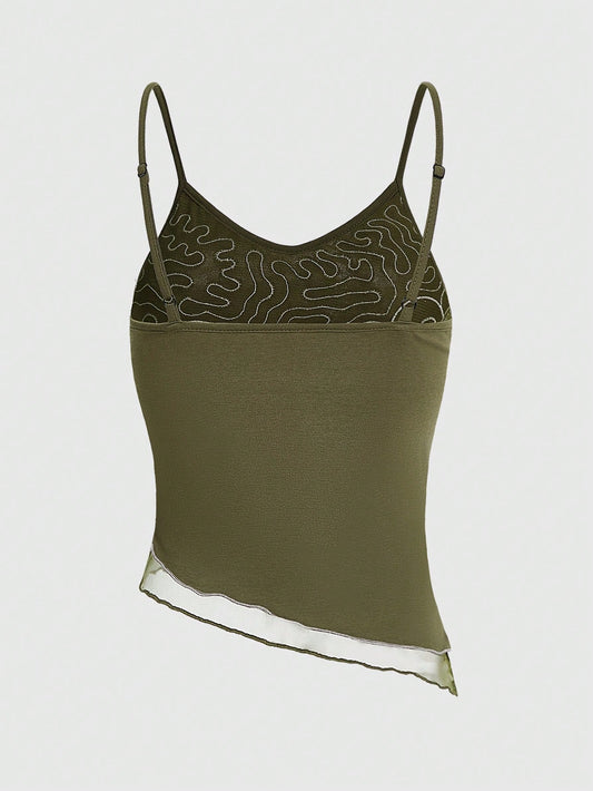 Sweetina Camiseta ajustada con encaje floral y bajo asimétrico