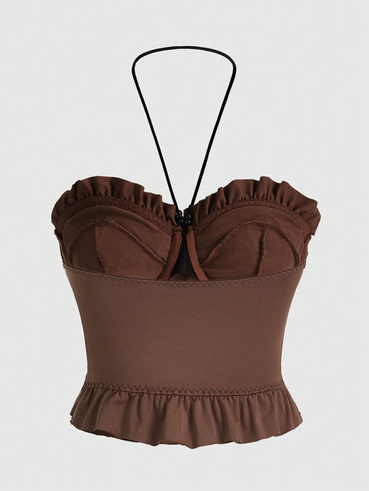 Sweetina Top De Cuello Tipo Halter Con Peluche Y Amarrado En La Parte Trasera