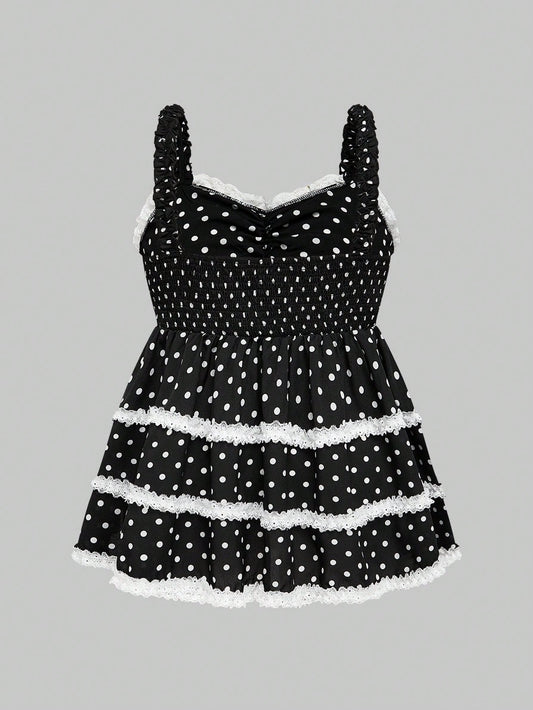 ROMWE Kawaii Top tipo camiseta de princesa con estampado de lunares y lazo para muñeca bebé