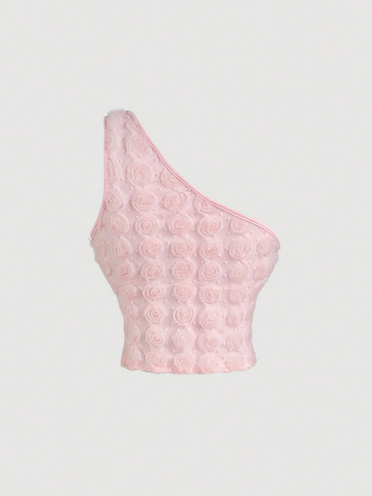 SHEIN MOD Top romántico de verano con textura de tela decorado con flores