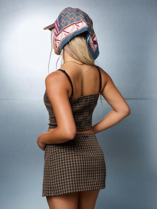 SUMWON WOMEN Top corto con corpiño con estampado de cuadros y aplicación de número sin mangas