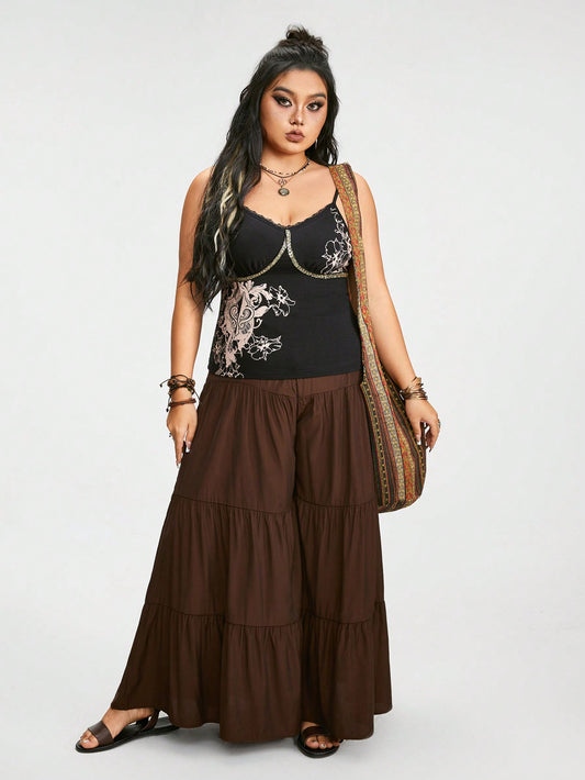 ROMWE Fairycore Talla grande Top de tirantes con estampado de rayas ribete con encaje