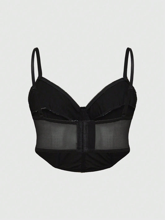 ROMWE Goth La Ropa Superior Sexy Del Bustier De Las Mujeres, Correa De Encaje Retorcida Delante
