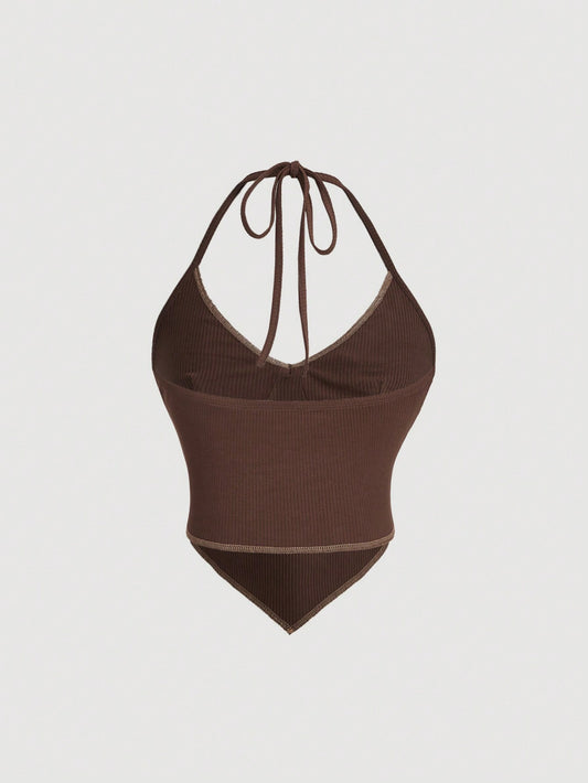 ROMWE Top De Punto Hueco Con Tirantes Para Atar En Los Hombros