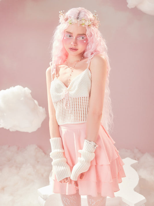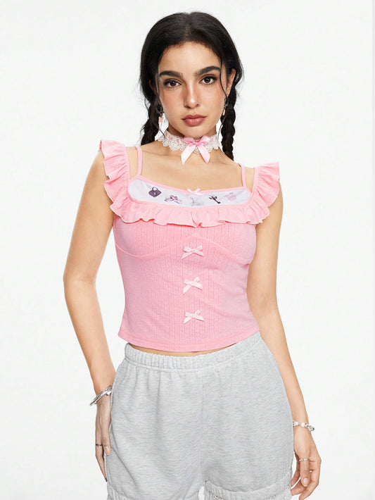 ROMWE Kawaii Top de tirantes rosa vintage lindo con lazo para el verano, escuela