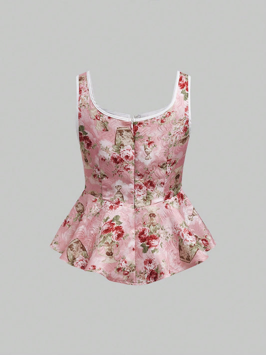 ROMWE Kawaii Top de tanque de camisola con estampado floral para Mujeres en estilo de vacaciones
