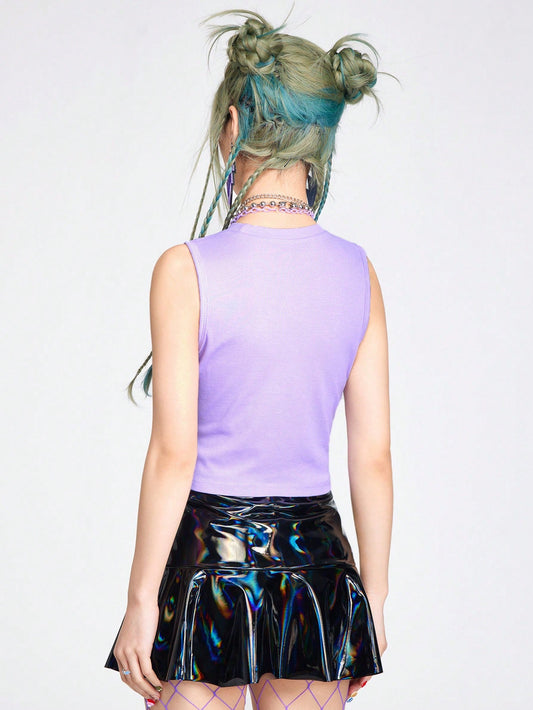 ROMWE Top tank cruzado con estampado con cordón lateral
