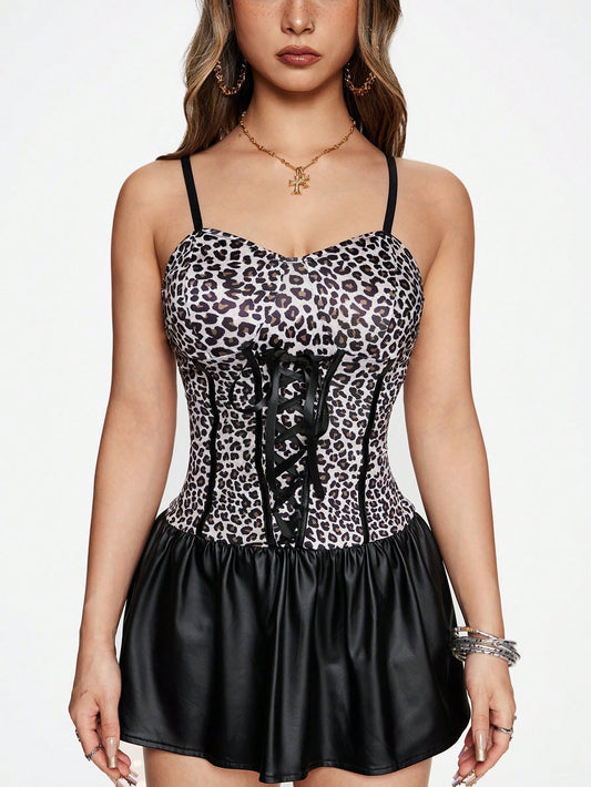 ROMWE J-Fashion Vestido mini estampado de leopardo Y2K para mujer