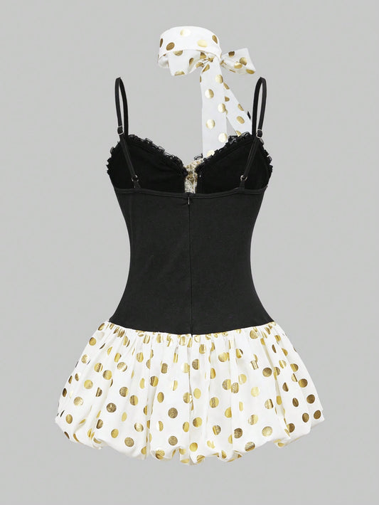 ROMWE Kawaii Vestido mini súper corto con lazo y lunares, estilo Y2K