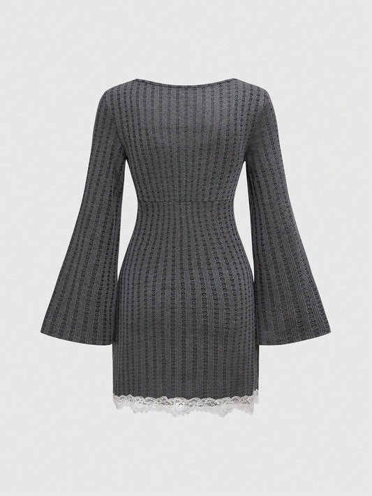 ROMWE Kawaii Vestido mini de mujer entallado de 2 en 1 con volantes en los puños y escote de corazón