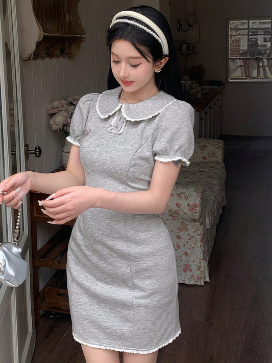 DAZY Vestido corto de estilo campestre con cuello Peter Pan y borde contrastante, vestido mini