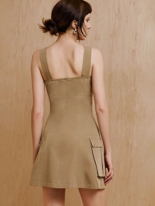 MONSE Vestido mini con cordones y bolsillos tipo cargo, vestido elegante de verano para vacaciones, fiestas, cumpleaños, playa, festivales, bodas, bailes de graduación