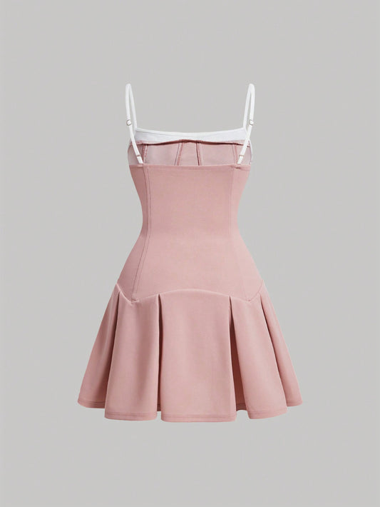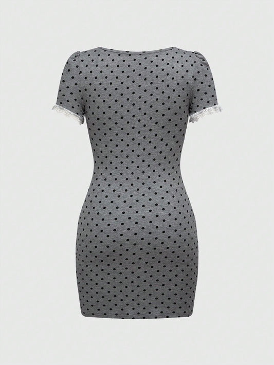 ROMWE Avant Vestido de punto con estampado de lunares, recortes en contraste de color y abertura sexy, con estilo retro del sur de Francia y Sicilia, de 2 en 1