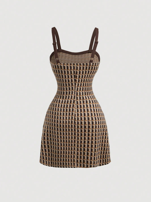 SHEIN MOD Estilos de verano con tirantes de patrón de tartán vintage, vestidos retro, vestidos de los 70, vestidos marrones, vestidos de otoño, ropa occidental, vestidos semi-formales