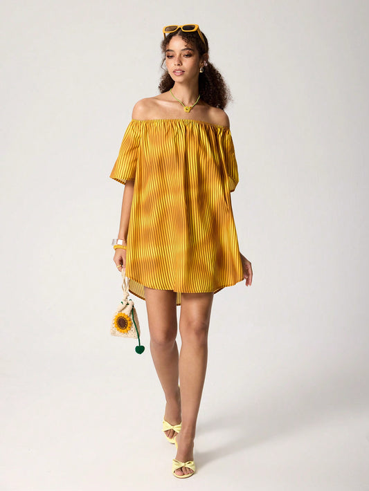 SV Pattern Studio Vestido informal de mujer con hombros descubiertos, parte delantera corta y parte trasera larga, vestido de verano