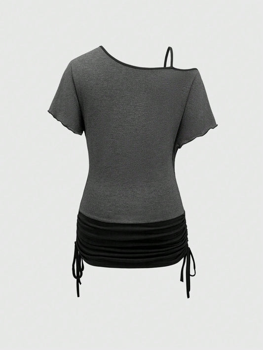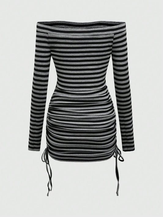 ROMWE Avant Vestido mini ajustado con hombros descubiertos y cordón de estilo Y2K