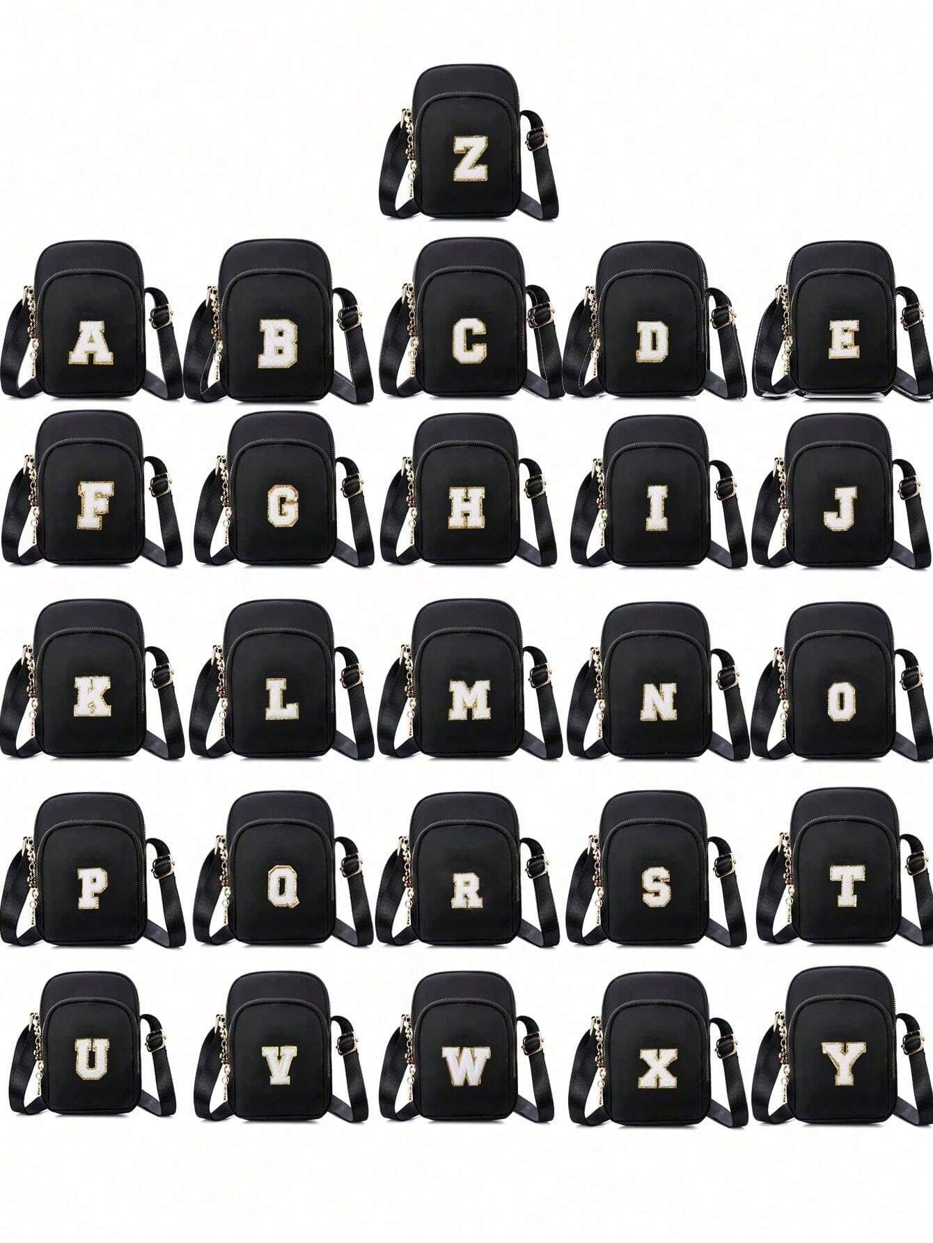 1 pieza Bolso de viaje de moda informal con correa cruzada y bolsa de tela para teléfono móvil y cartera vertical para niña. Regalos para el regreso a la escuela. (La posición de las letras no está fija)