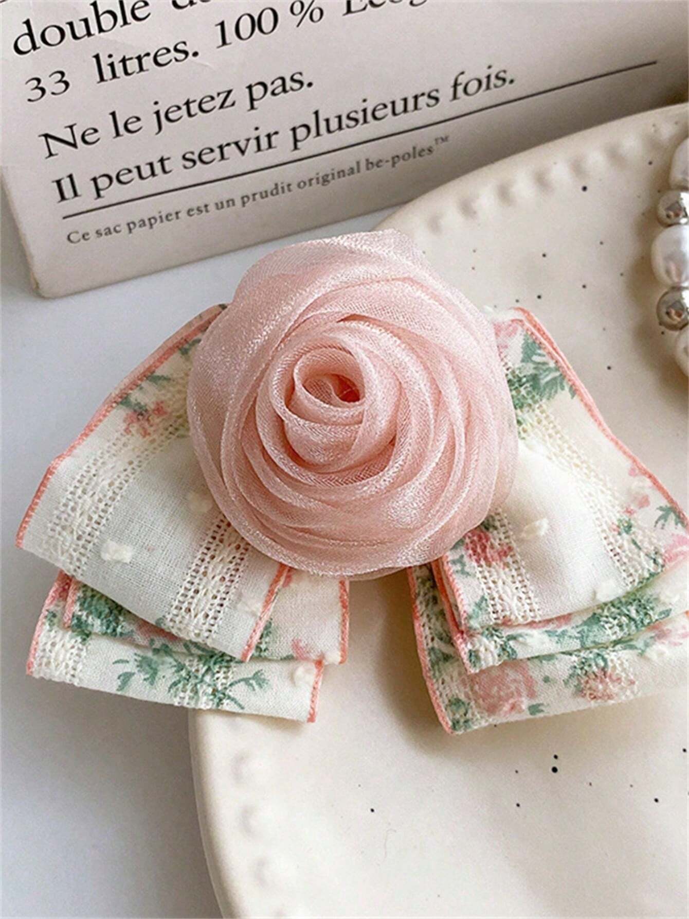 1 pieza Clip de cabello elegante de encaje floral con cinta para mujeres, adecuado para uso diario, escuela, playa, oficina, fiesta, regalo de cumpleaños, temporada de vuelta a clases