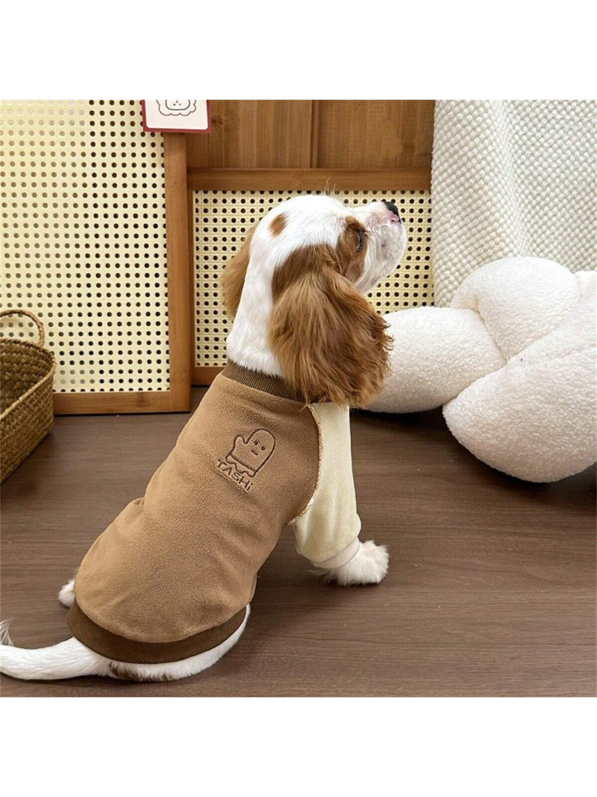 1 pieza Ropa para mascotas de color café con cuello redondo y mangas raglan para perros y gatos pequeños/medianos, otoño/invierno
