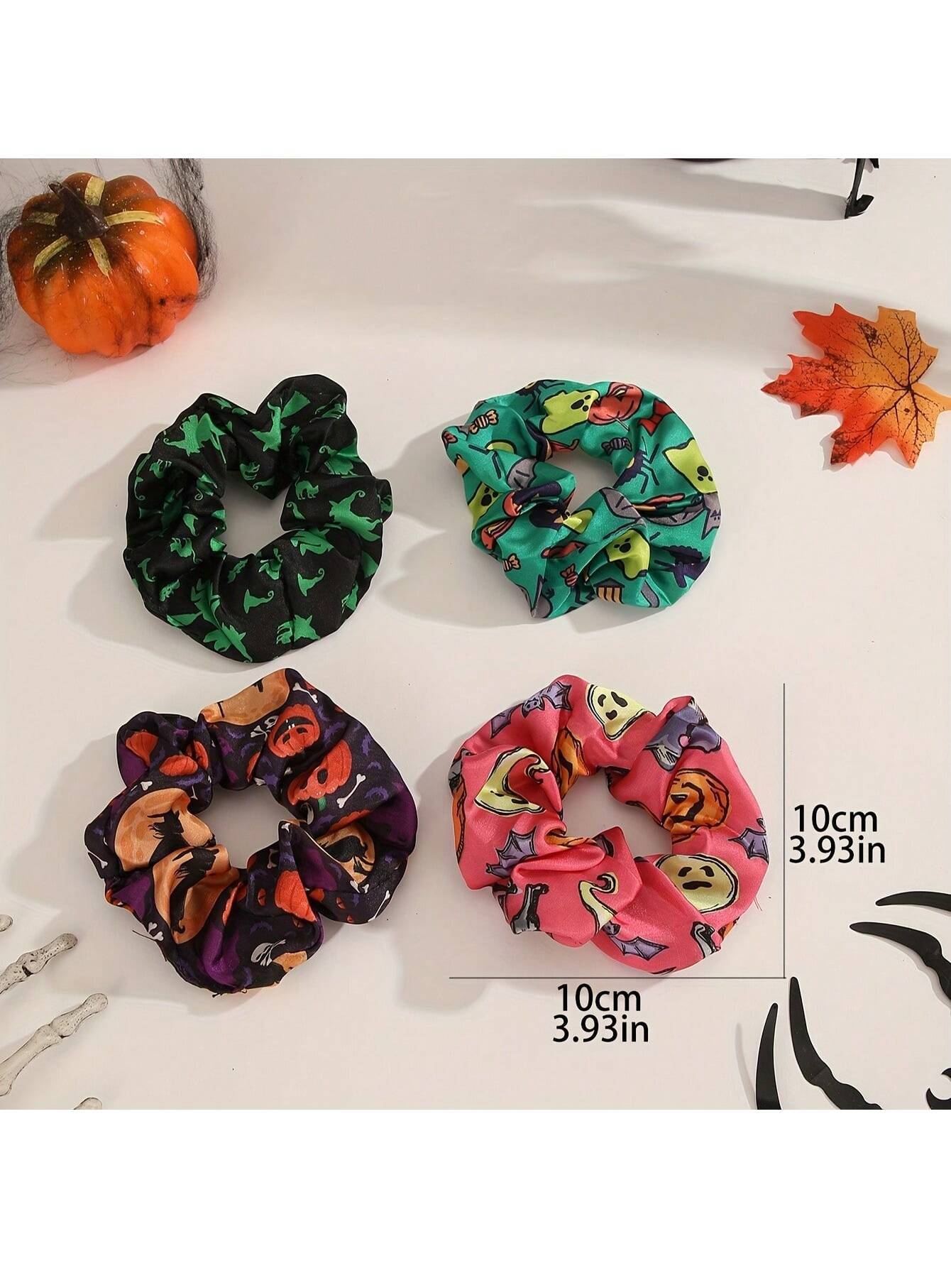 4 piezas Scrunchies con tema retro de calabaza, fantasma y murciélago para mujeres, adecuado para fiesta de Halloween