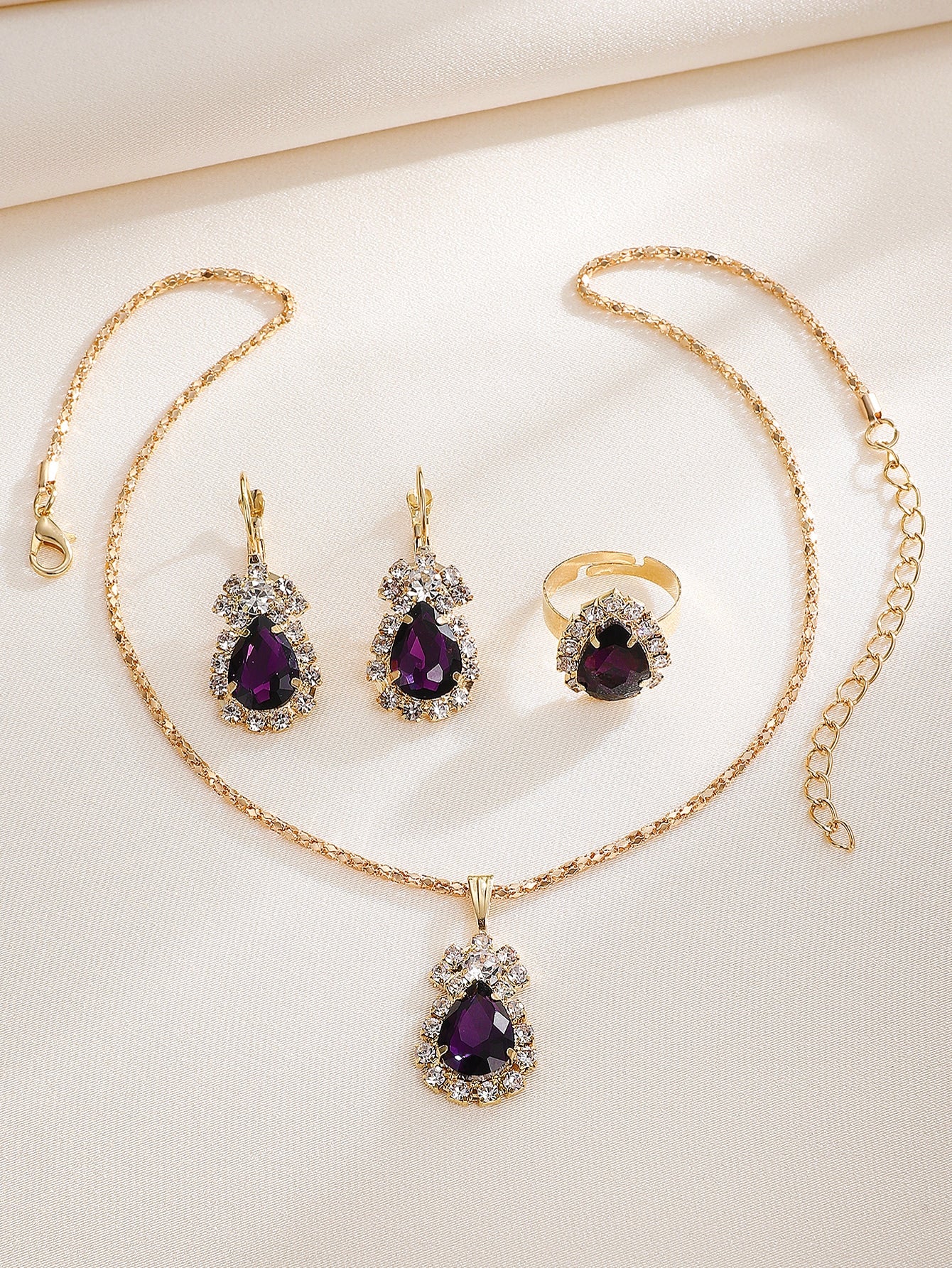 4 piezas/set collar con diseño de gota de agua, pendientes, anillo y pulsera, conjunto de joyería para mujer, fiesta, boda, novia, regalo