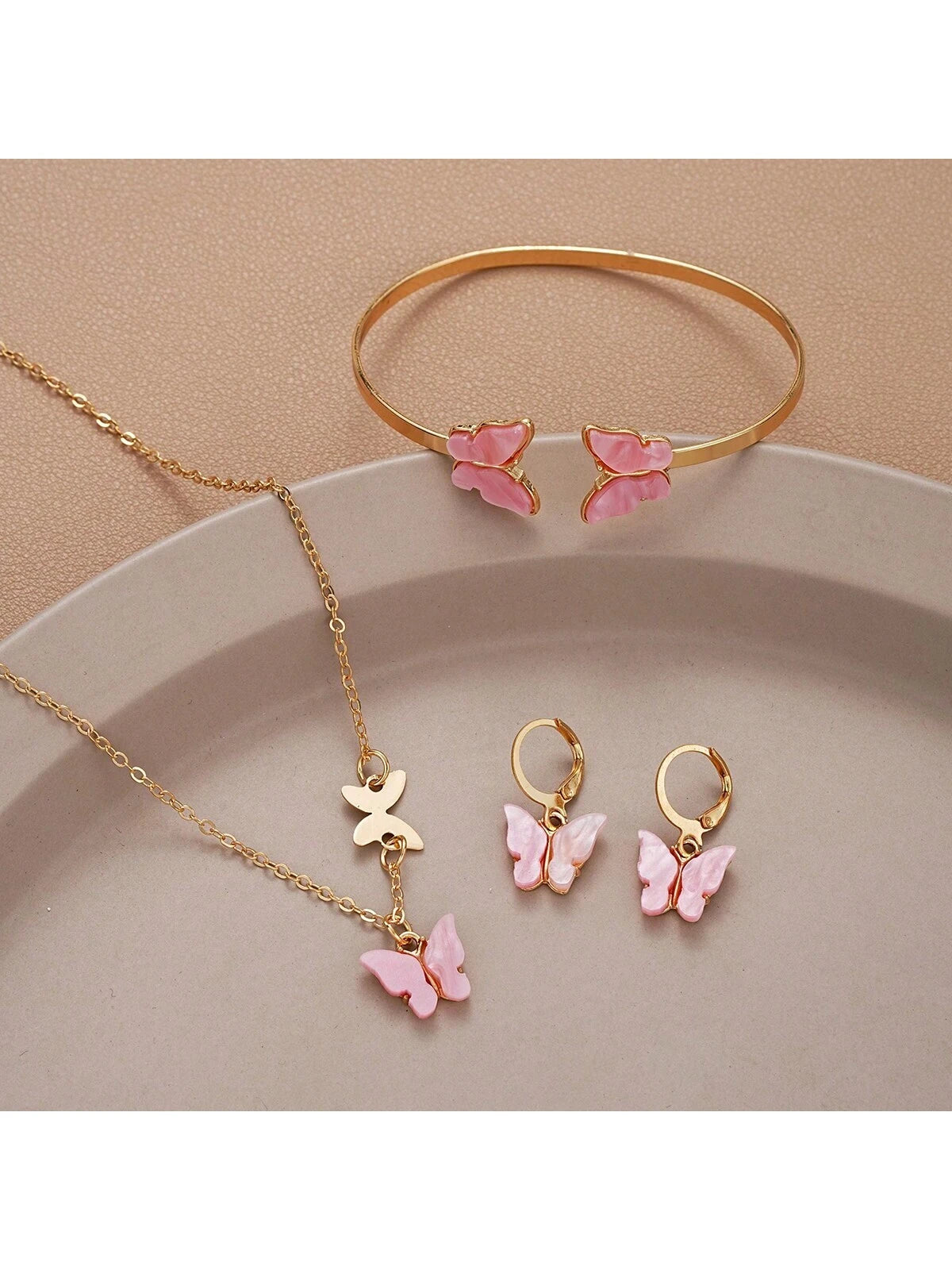 4 Piezas/set Juego De Pendientes, Pulsera Y Collar Con Forma De Mariposa Para Citas Y Regalos De Vacaciones Para Mujeres