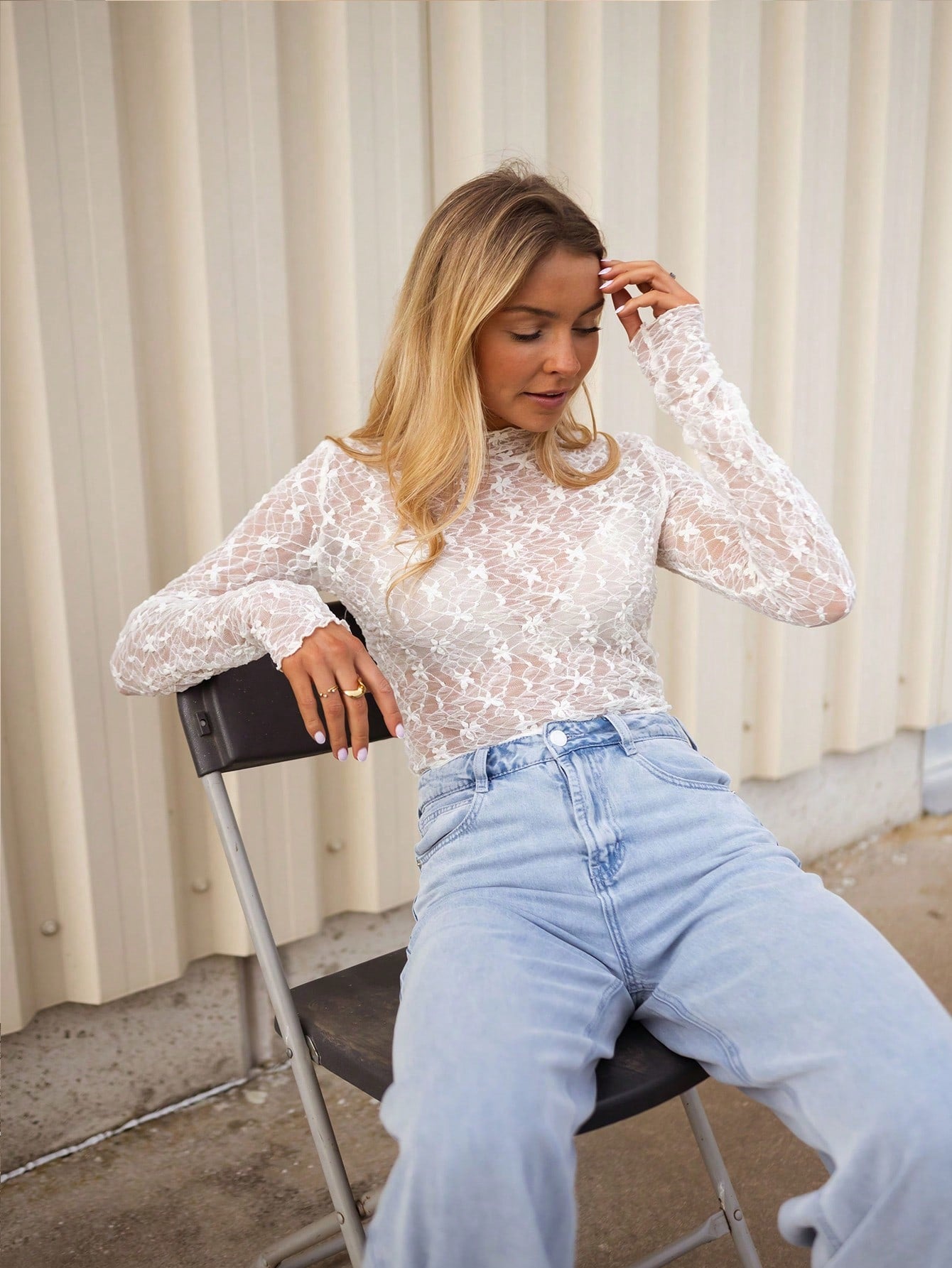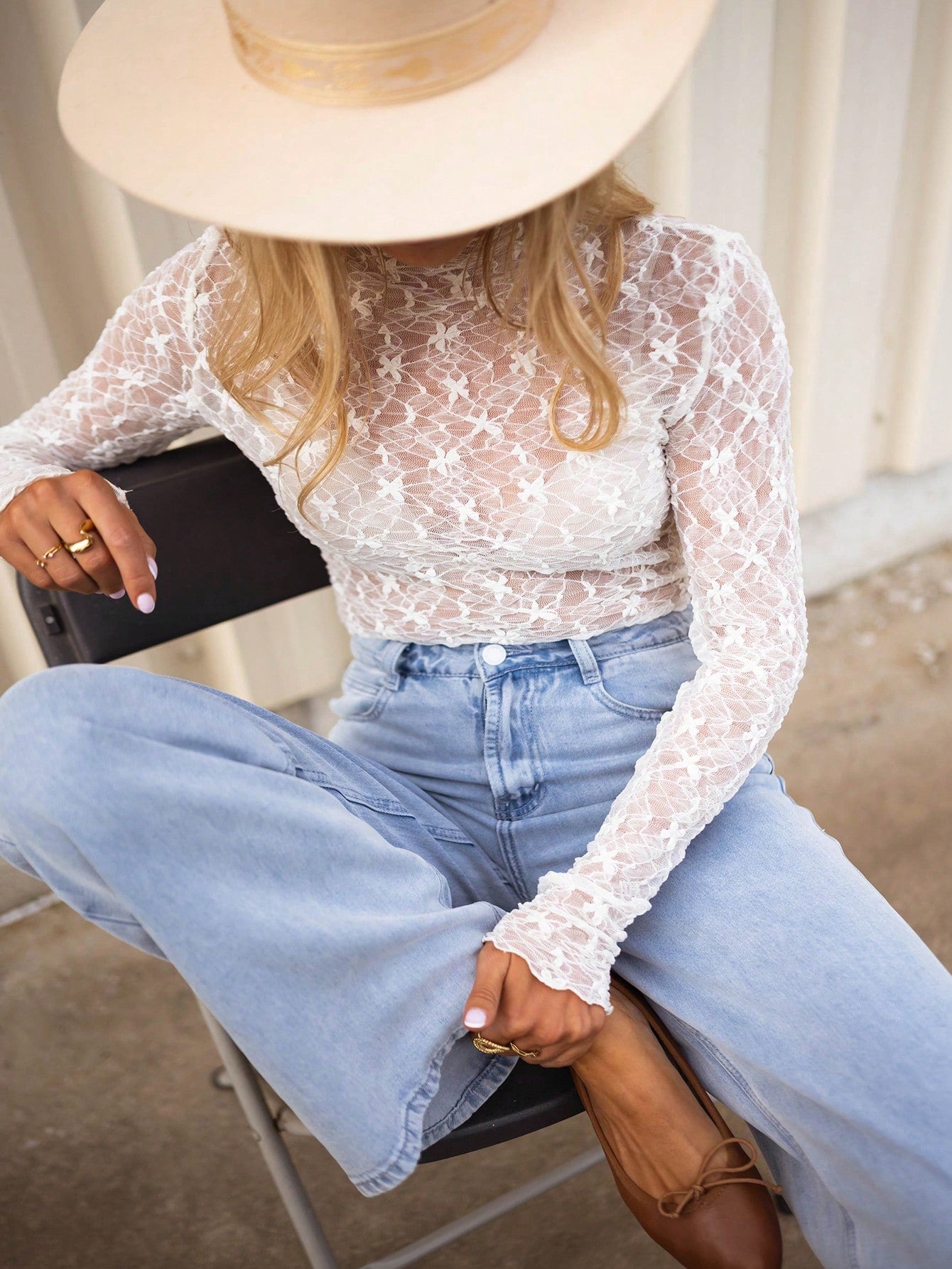 Blusa ligera y transpirable de primavera/verano con cuello redondo, manga larga, bordado floral y encaje de ganchillo, blusa casual calada para mujer, elegante camisa de manga larga, blusa transparente y sexy de cuello r