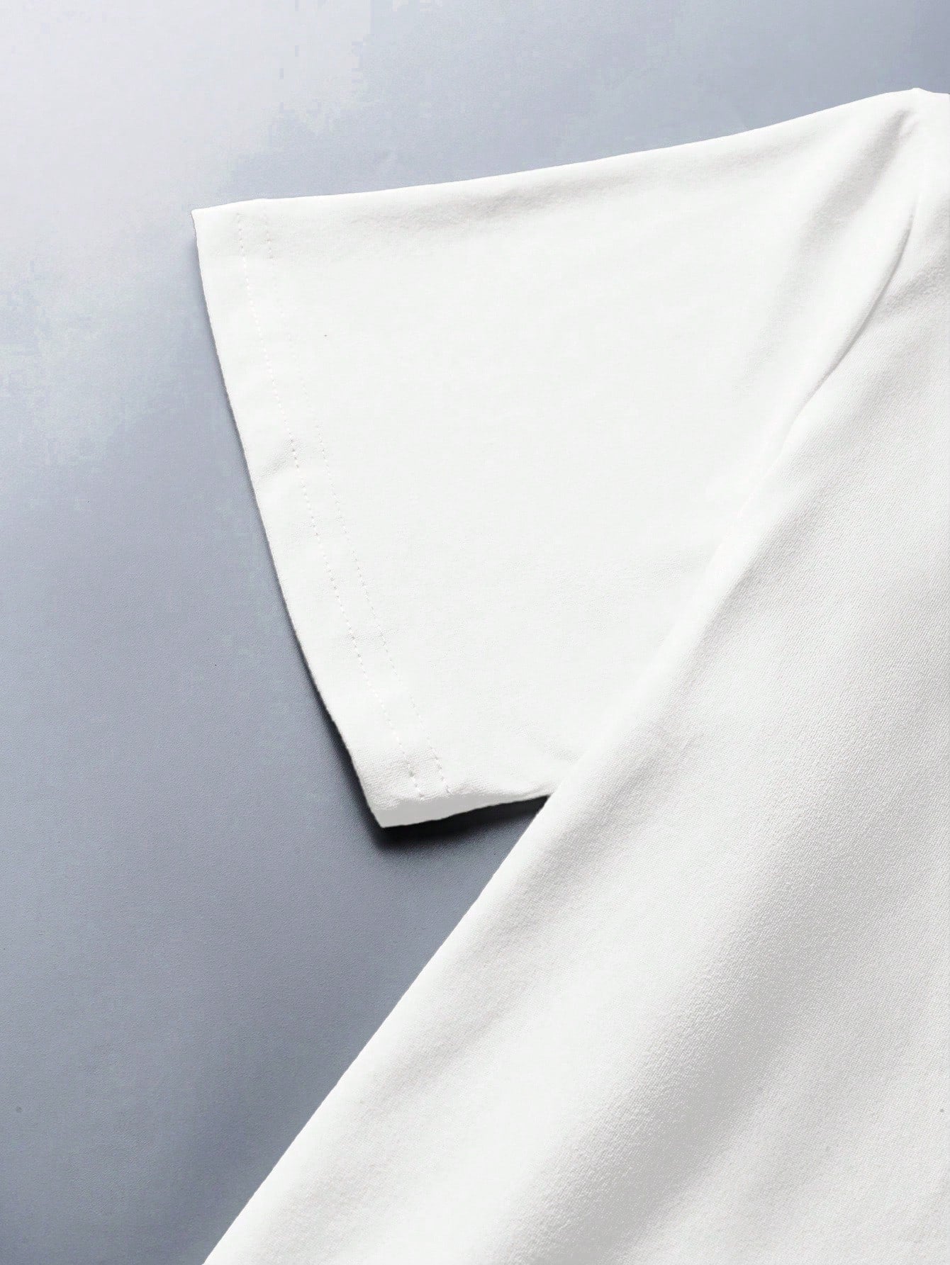 Camiseta de mujer con estampado divertido de tiburón y letras, diseño con tema oceánico, cómoda camisa casual de cuello redondo y manga corta para primavera/verano