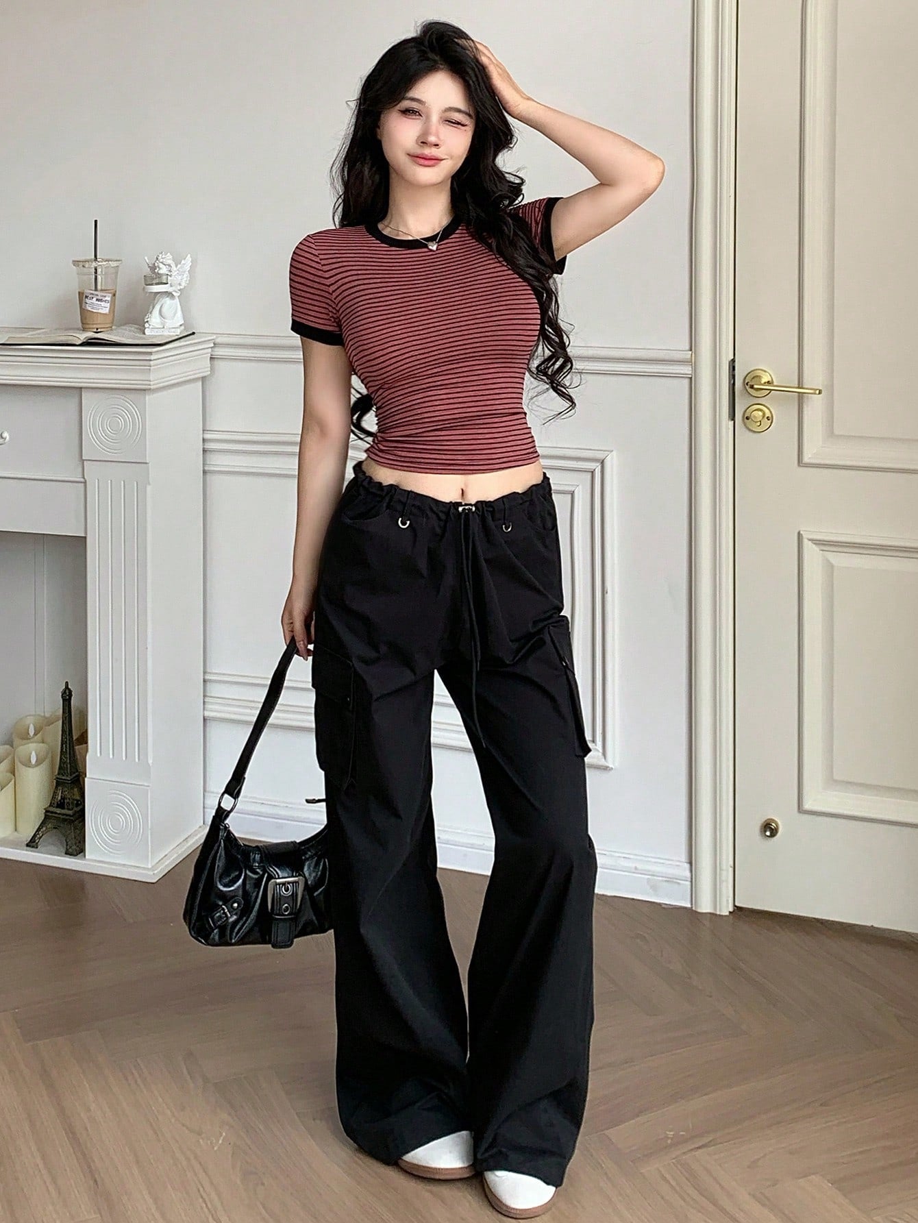DAZY Camiseta de manga corta de rayas de ajuste ceñido para mujer, ropa de vuelta al colegio