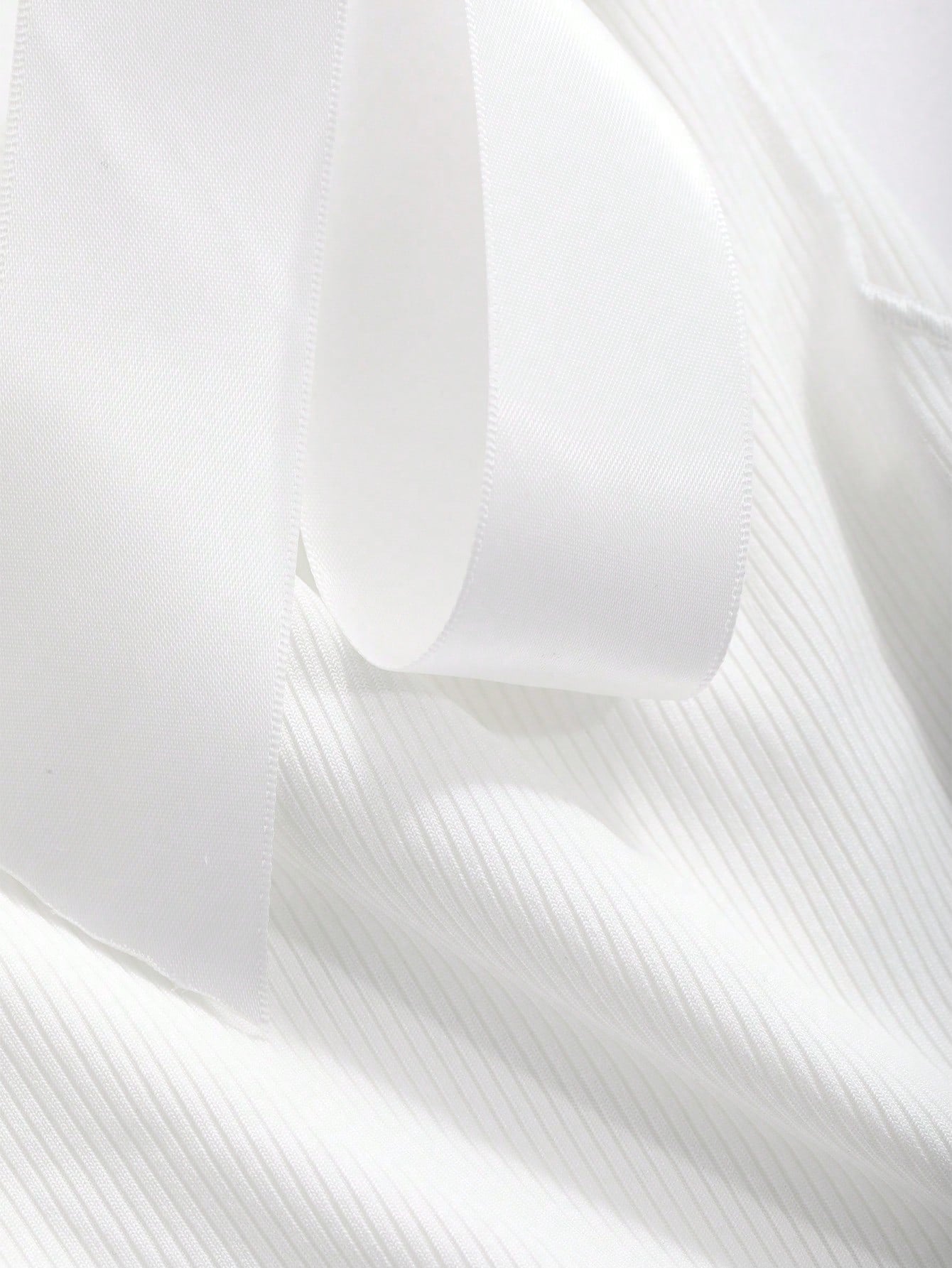 DAZY Camiseta de mujer de ajuste ceñido con lazada en la espalda, mangas cortas y diseño de cordones, para el verano