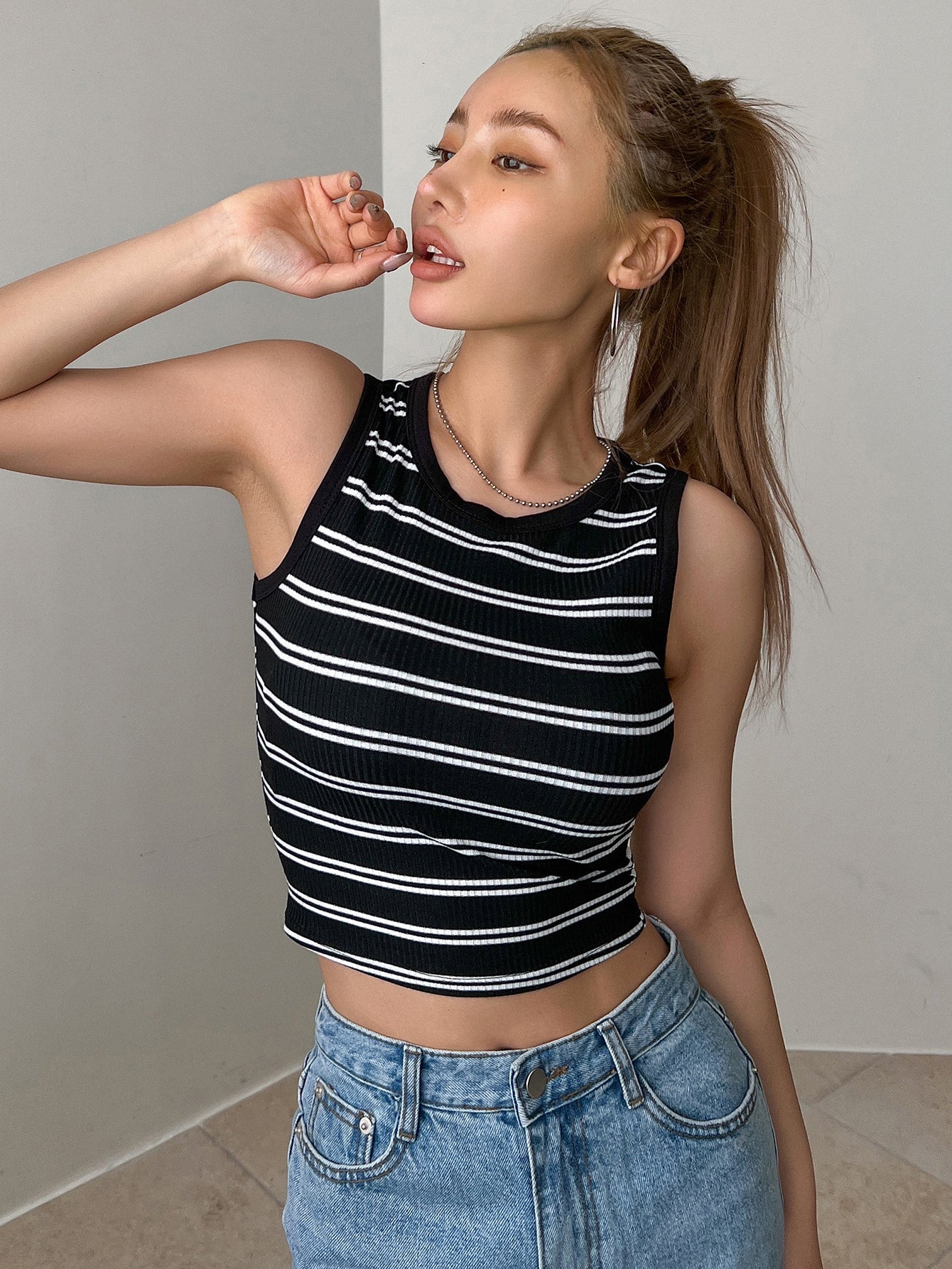 DAZY Top De Tanque Corto Con Estampado A Rayas
