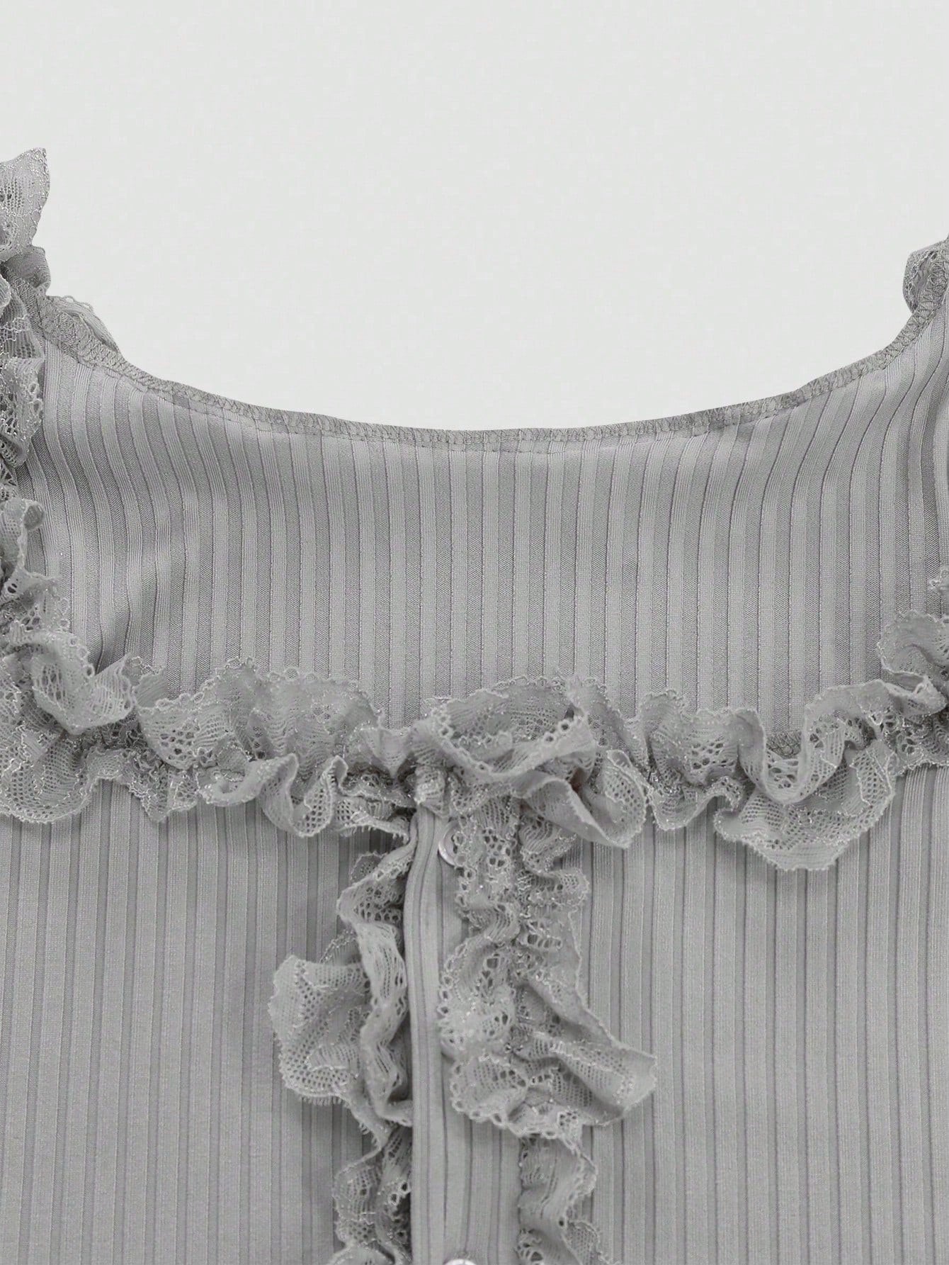 Flirla Camiseta de tirantes de mujer con bajo asimétrico de encaje blanco tejido elástico