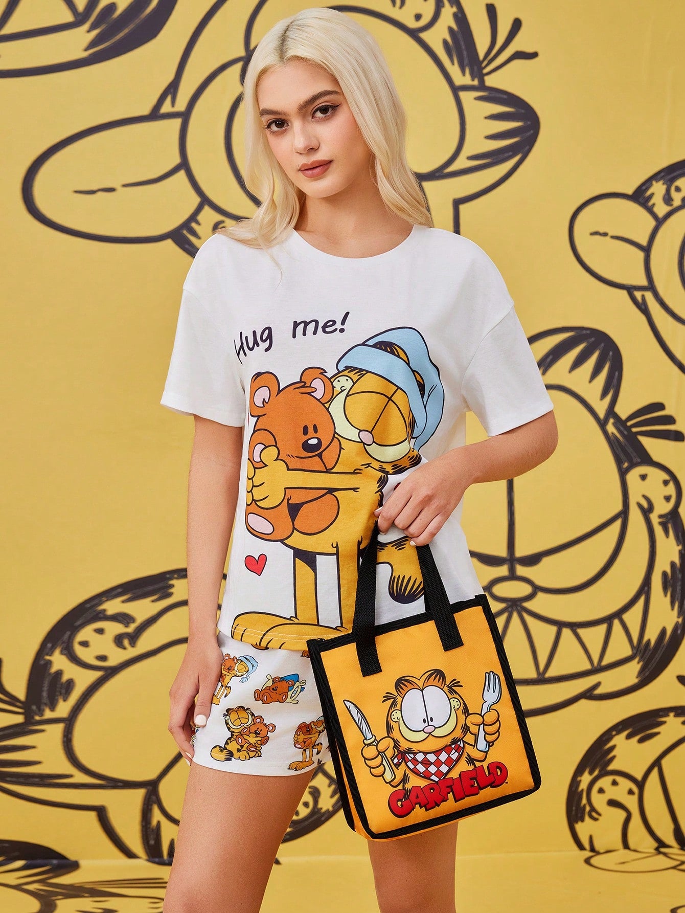 GARFIELD | SHEIN Bolsa térmica aislada con estampado de gato de dibujos animados, bolsa enfriadora de picnic, gran capacidad para guardar cajas de almuerzo, bebidas, etc.