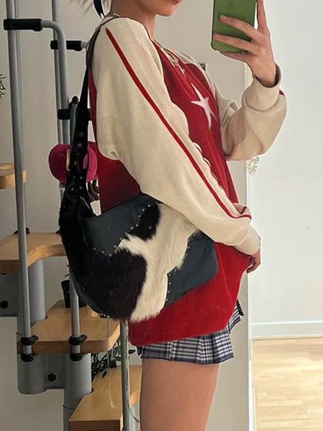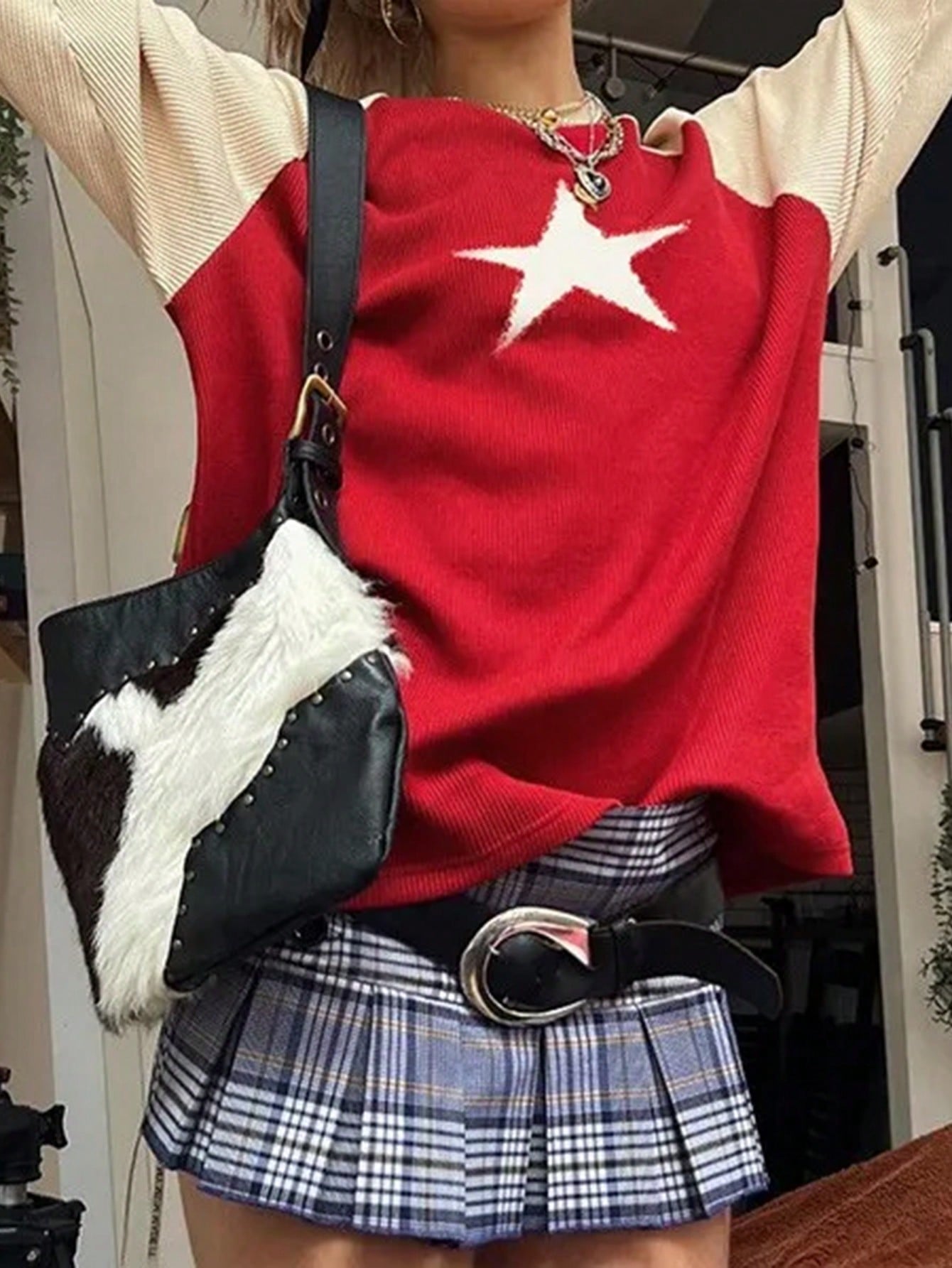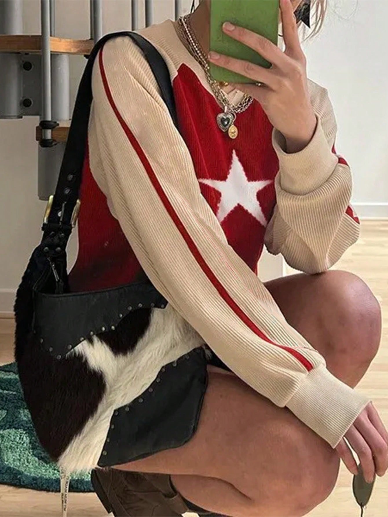 INAWLY Sudadera de cuello redondo casual de mujer con estampado de estrella de color contrastante, para primavera/otoño