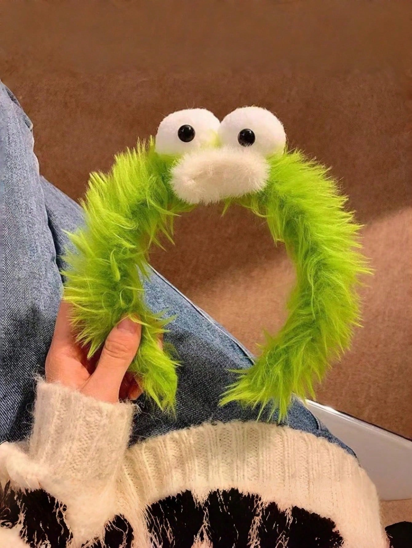 Joivida Diadema de lavado con cara de monstruo lindo, banda para el cabello de felpa con boca de salchicha de ojos grandes, accesorio suave para el maquillaje y el cuidado de la piel, artículo esencial divertido para el