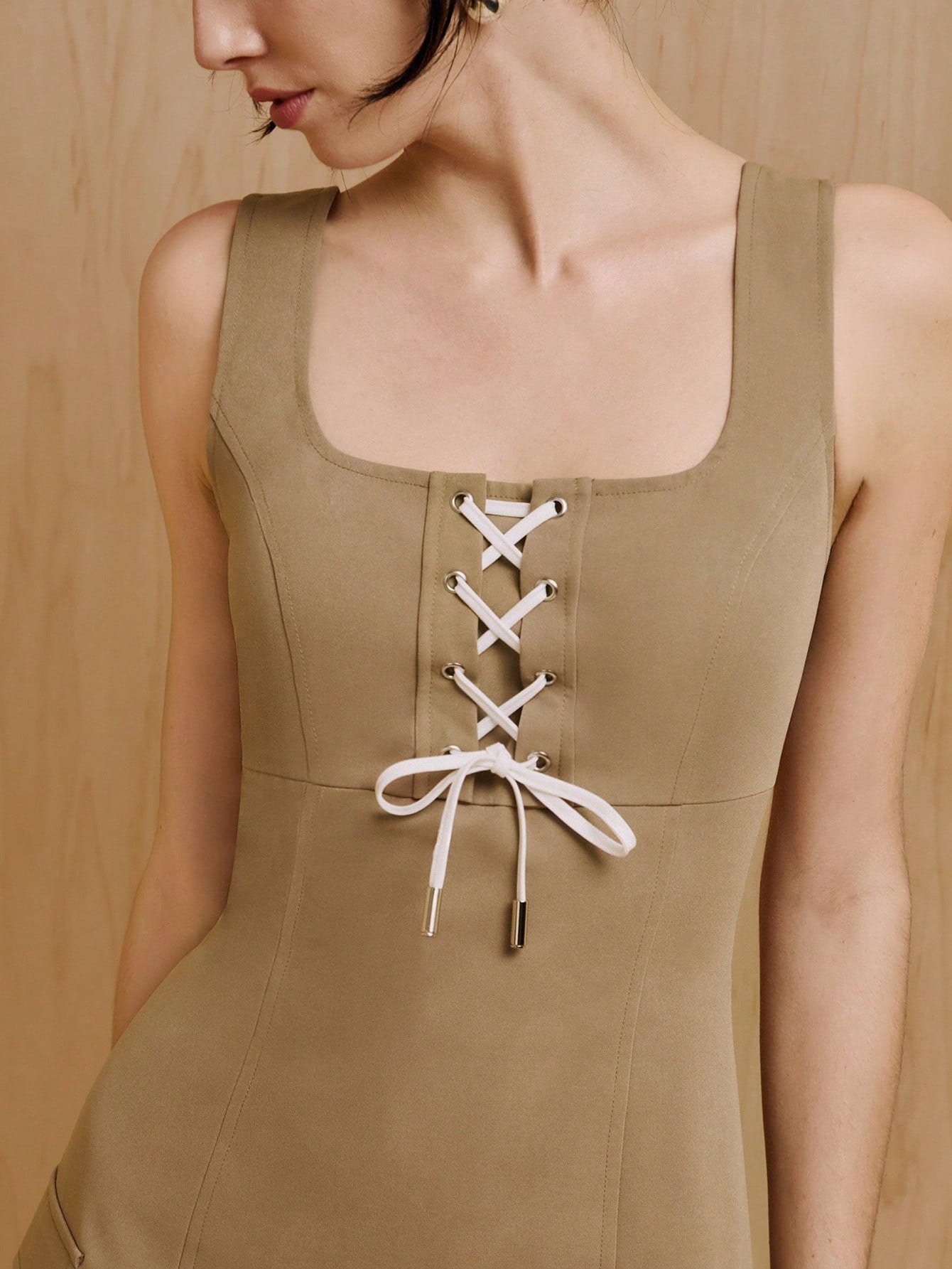 MONSE Vestido mini con cordones y bolsillos tipo cargo, vestido elegante de verano para vacaciones, fiestas, cumpleaños, playa, festivales, bodas, bailes de graduación