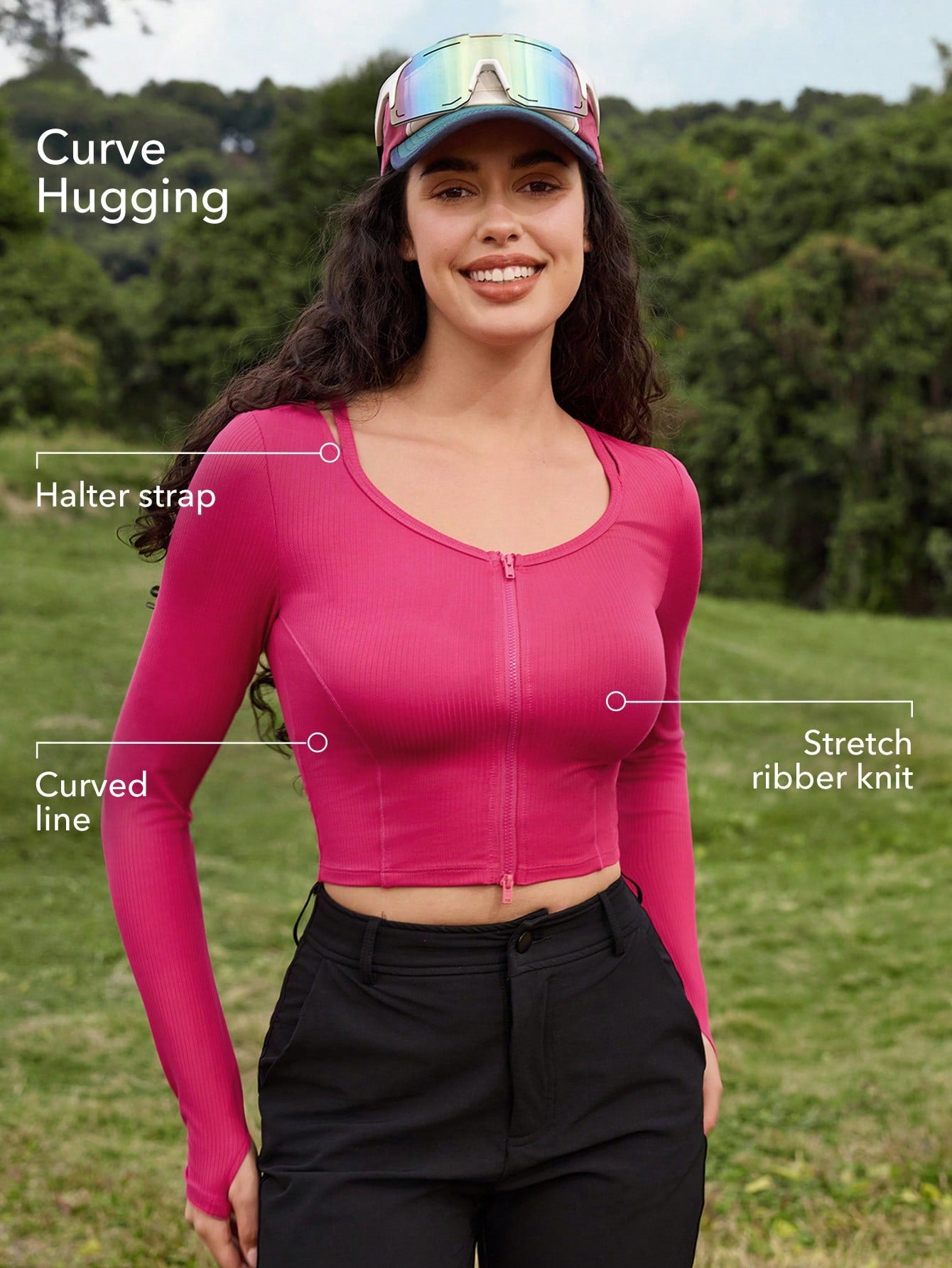 OutZeal Sudaderas primaverales de manga larga, de ajuste slim, de secado rápido, con cierre de cremallera, tirantes de canalé cómodos y suaves como la mantequilla, en color musgo
