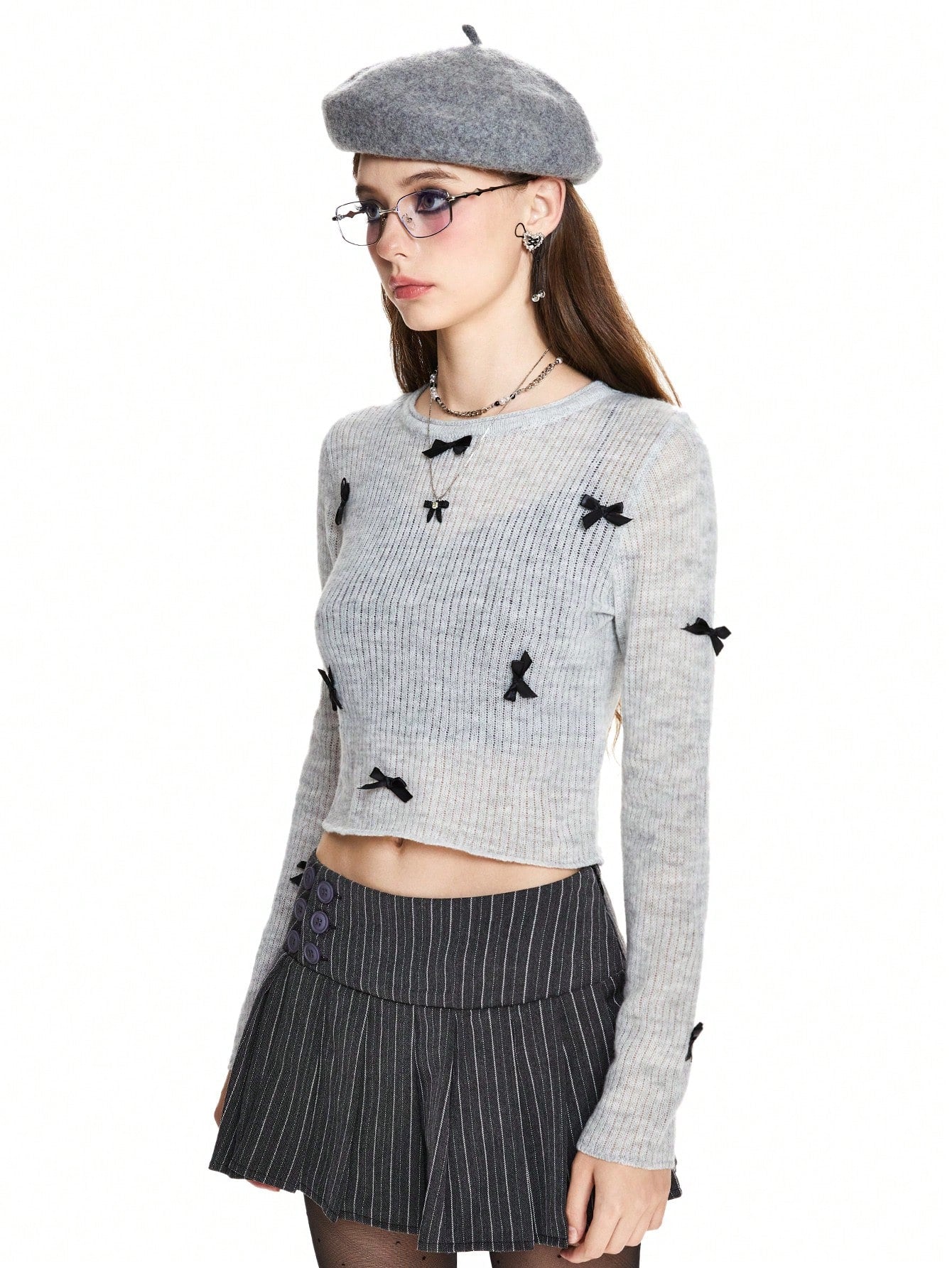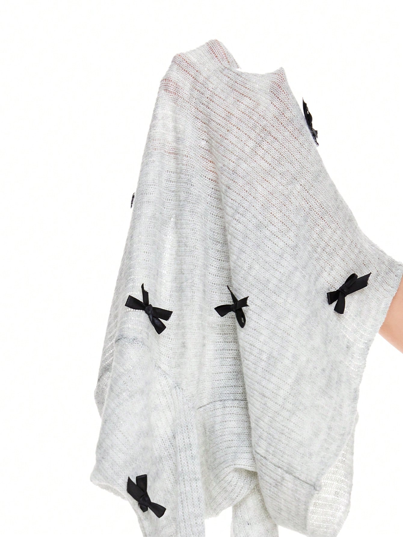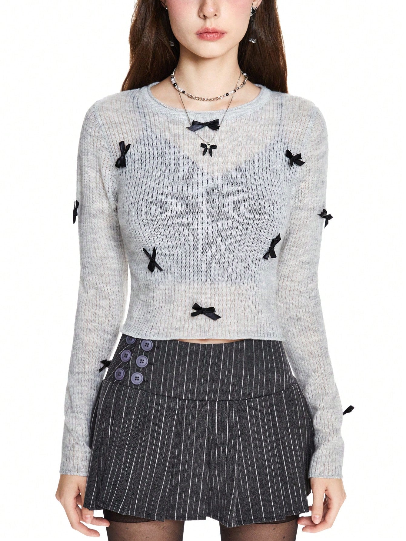 ROMWE Avant Suéter ajustado para mujer de manga larga con decoración de lazo, lindo y dulce