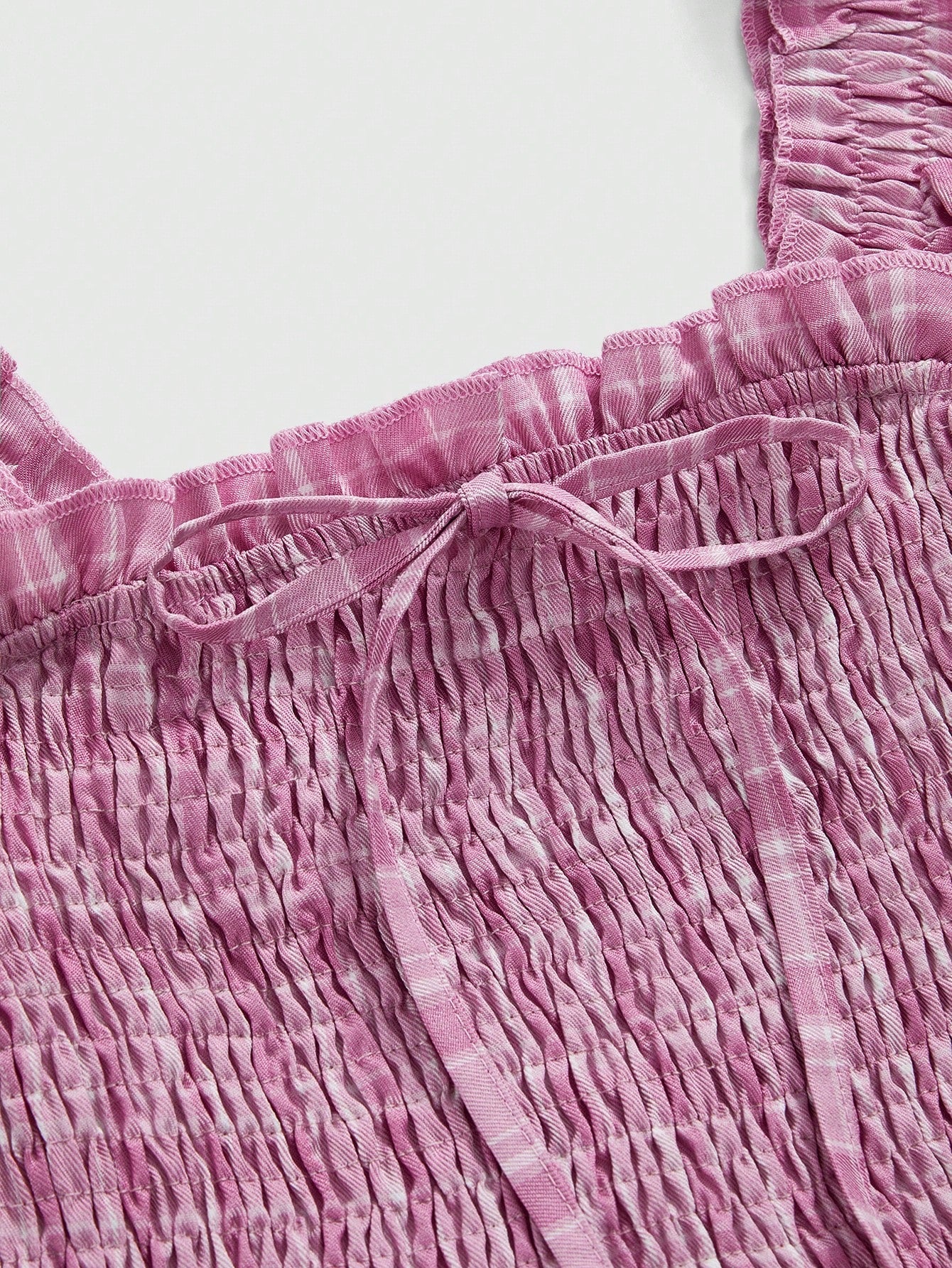 ROMWE Camiseta sin mangas a cuadros retro dulce y picante para mujer