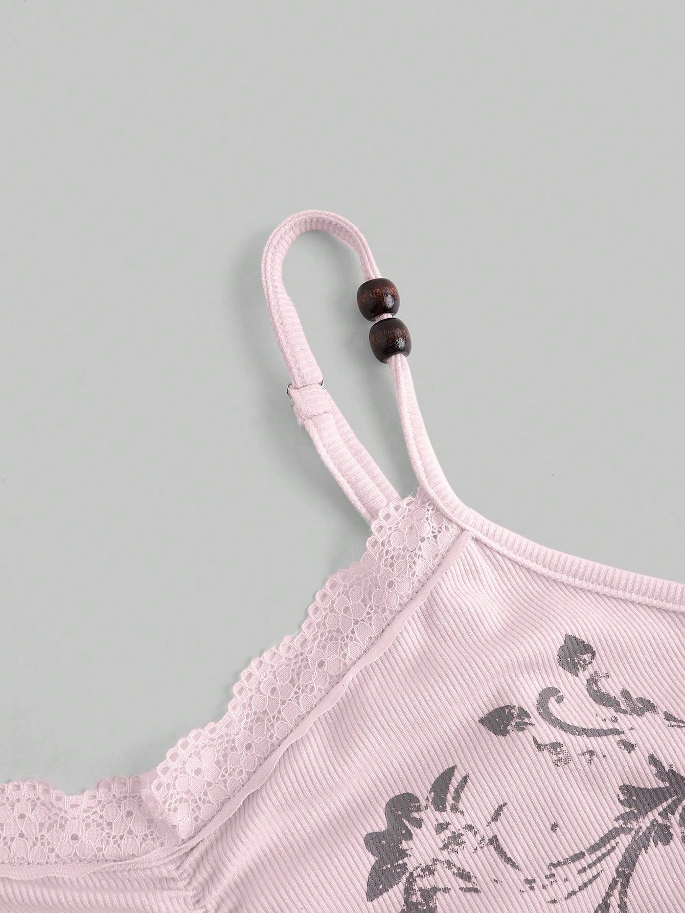 ROMWE Fairycore Camiseta sin tirantes casual y sencilla con estampado floral para mujer