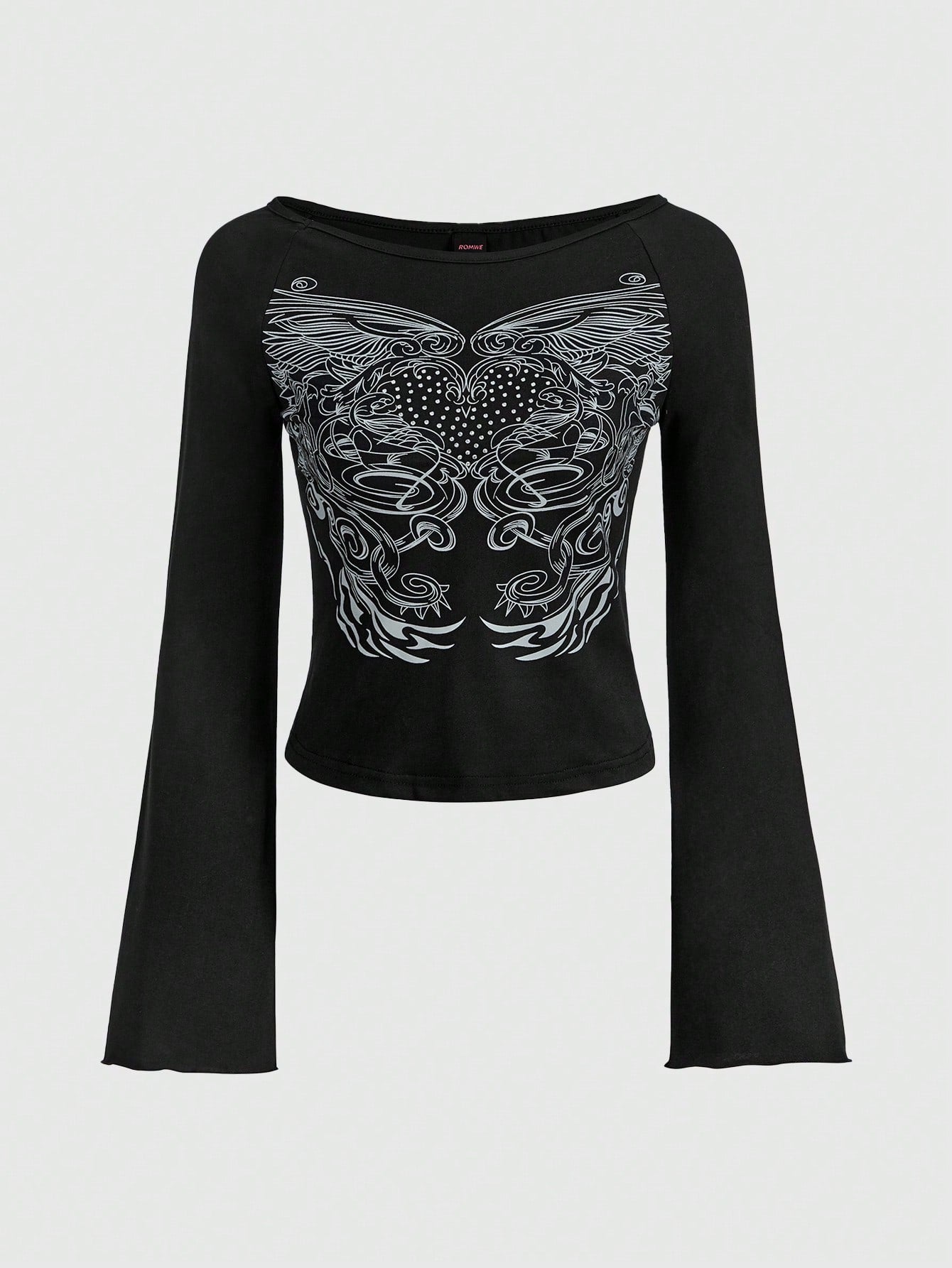 ROMWE Fairycore Camisetas de Mujer Diamante de imitación Gráfico Casual