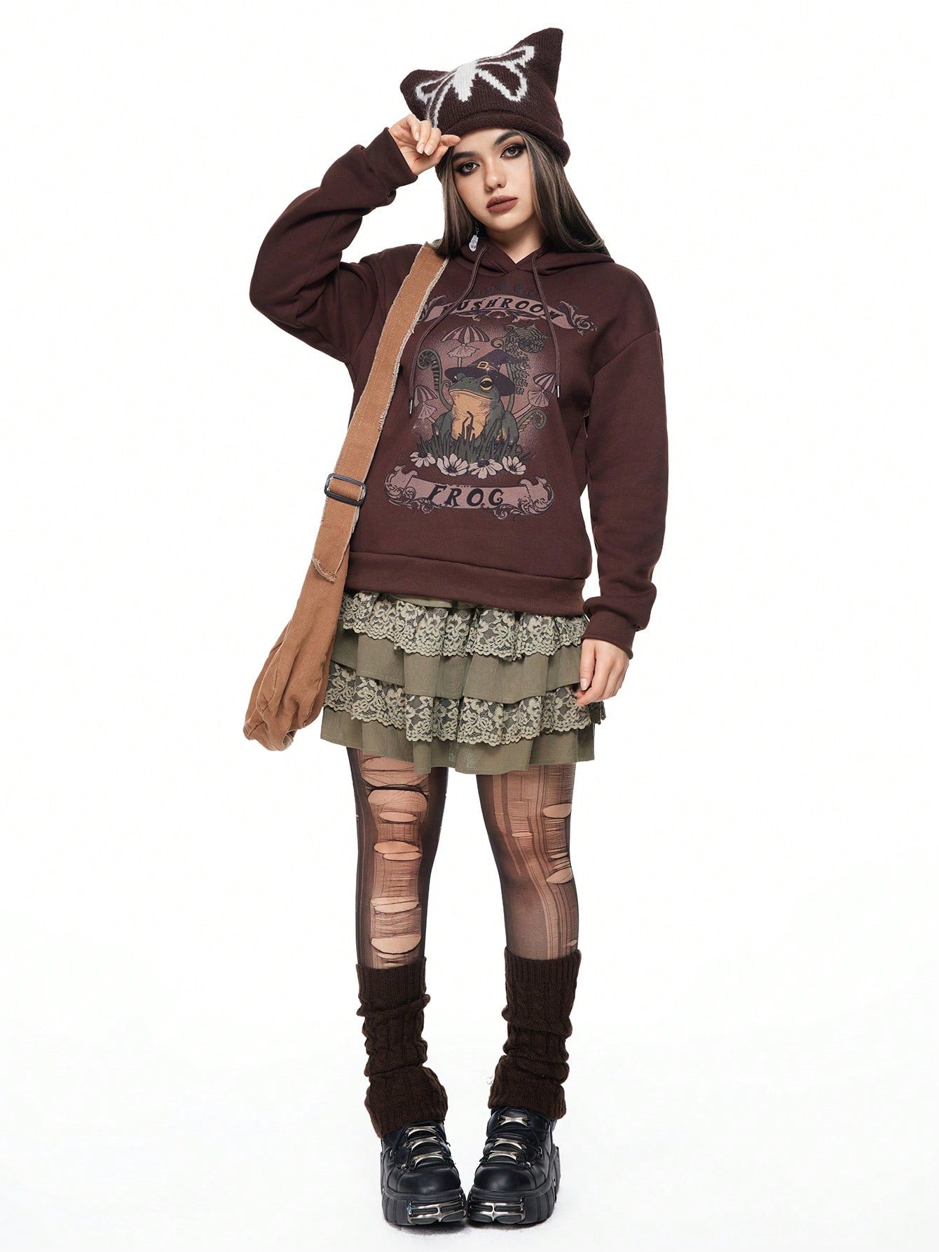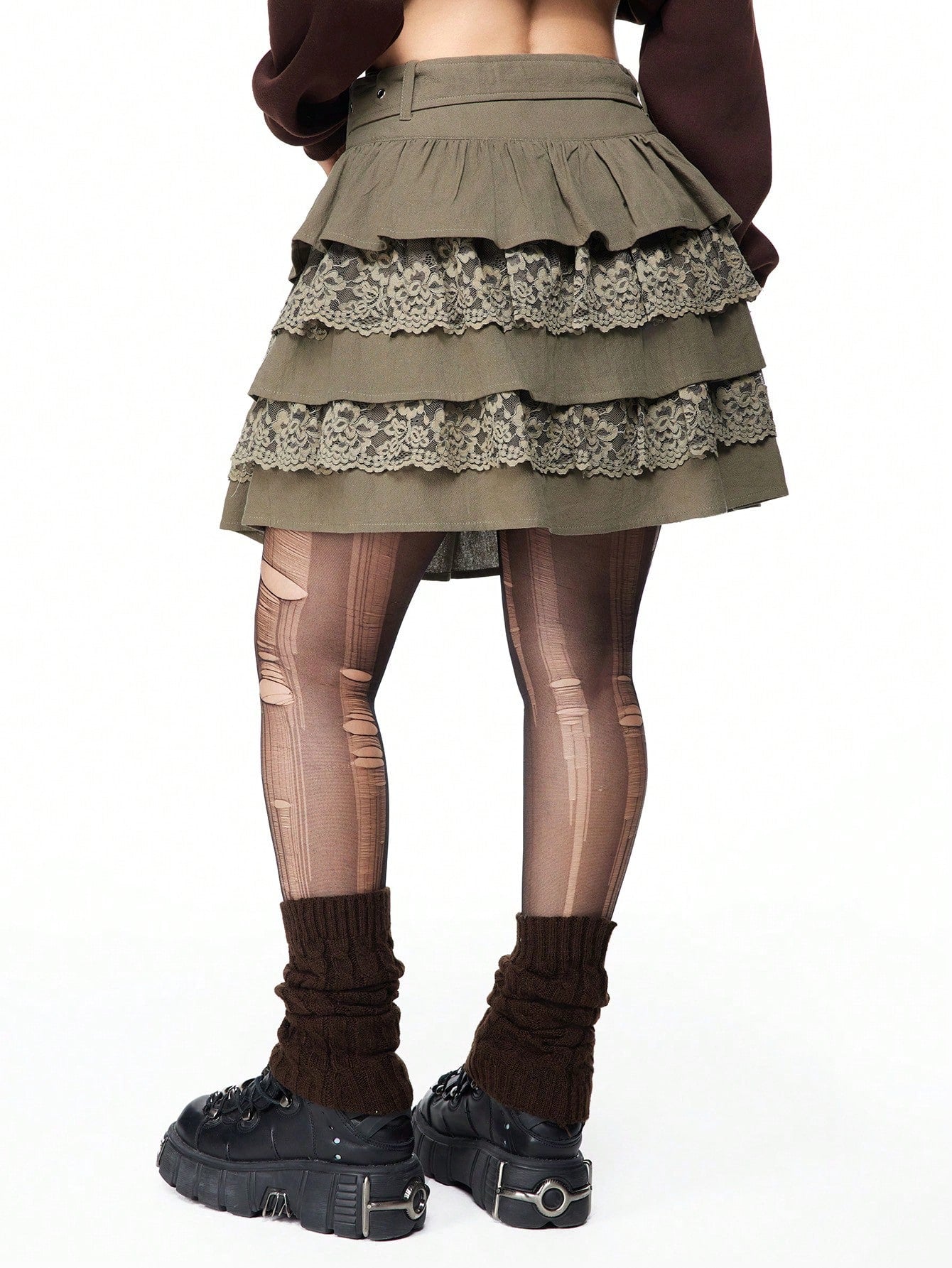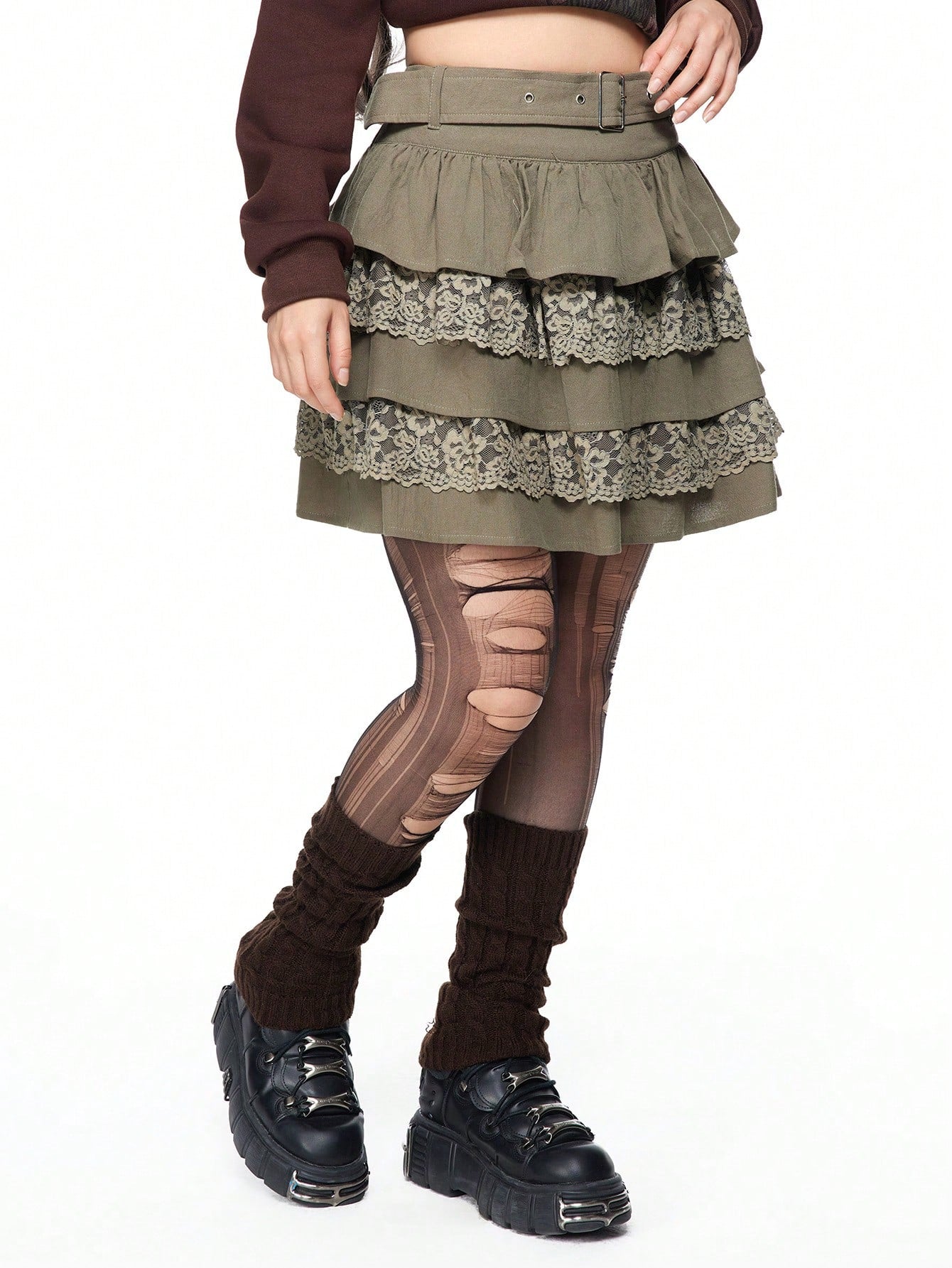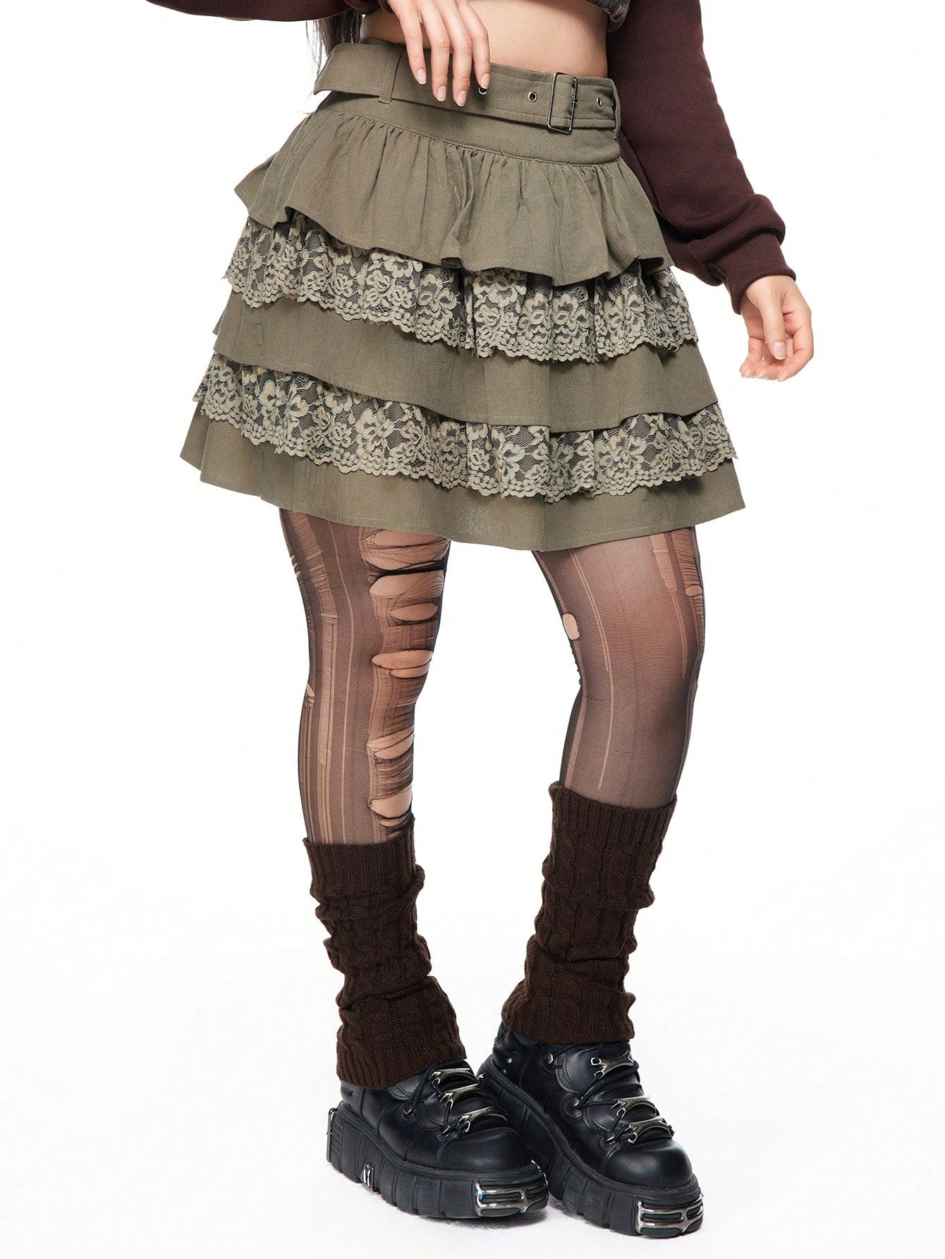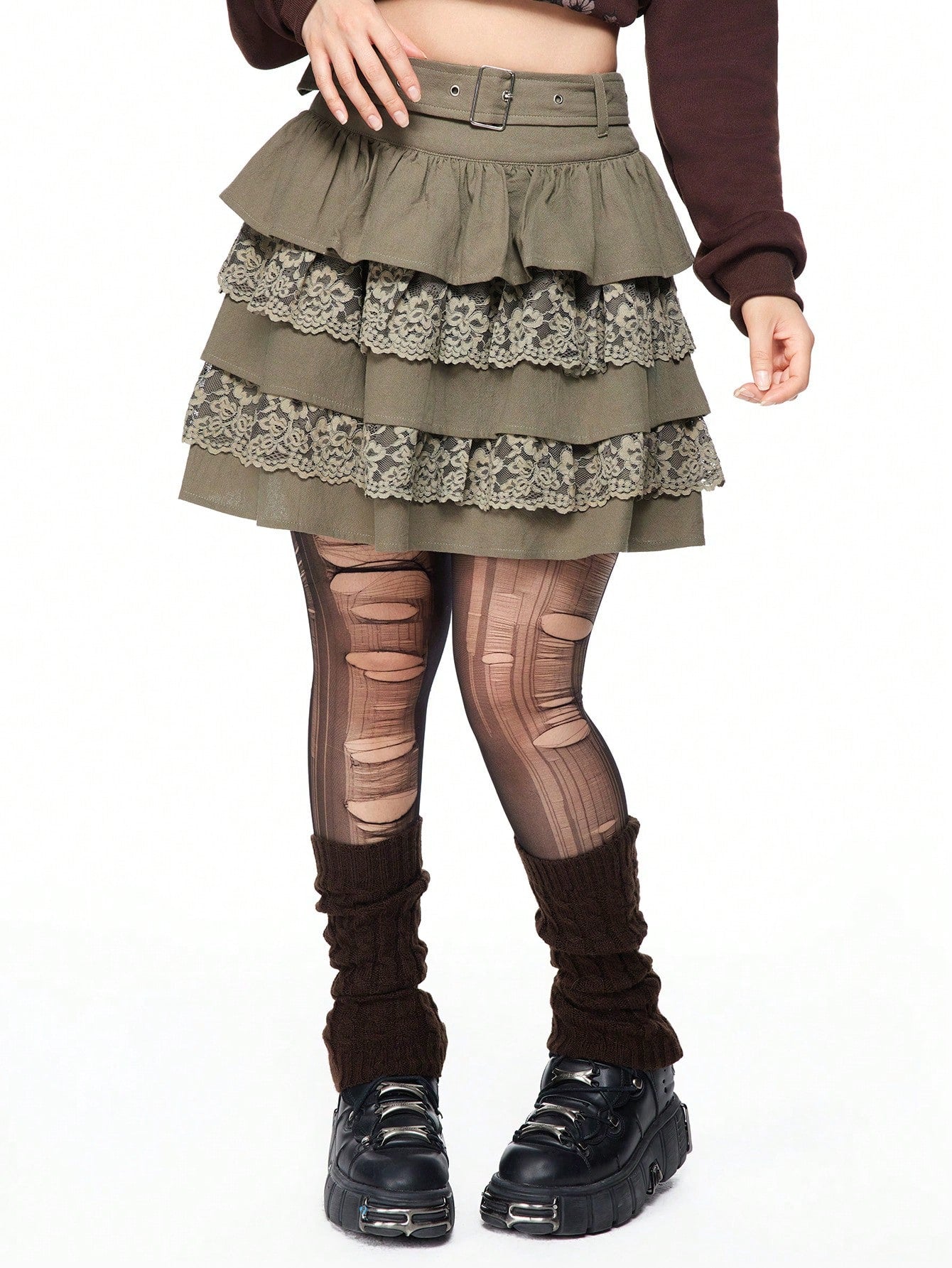 ROMWE Fairycore Falda con volantes y adorno de encaje en estilo 'Fairycore' para mujeres