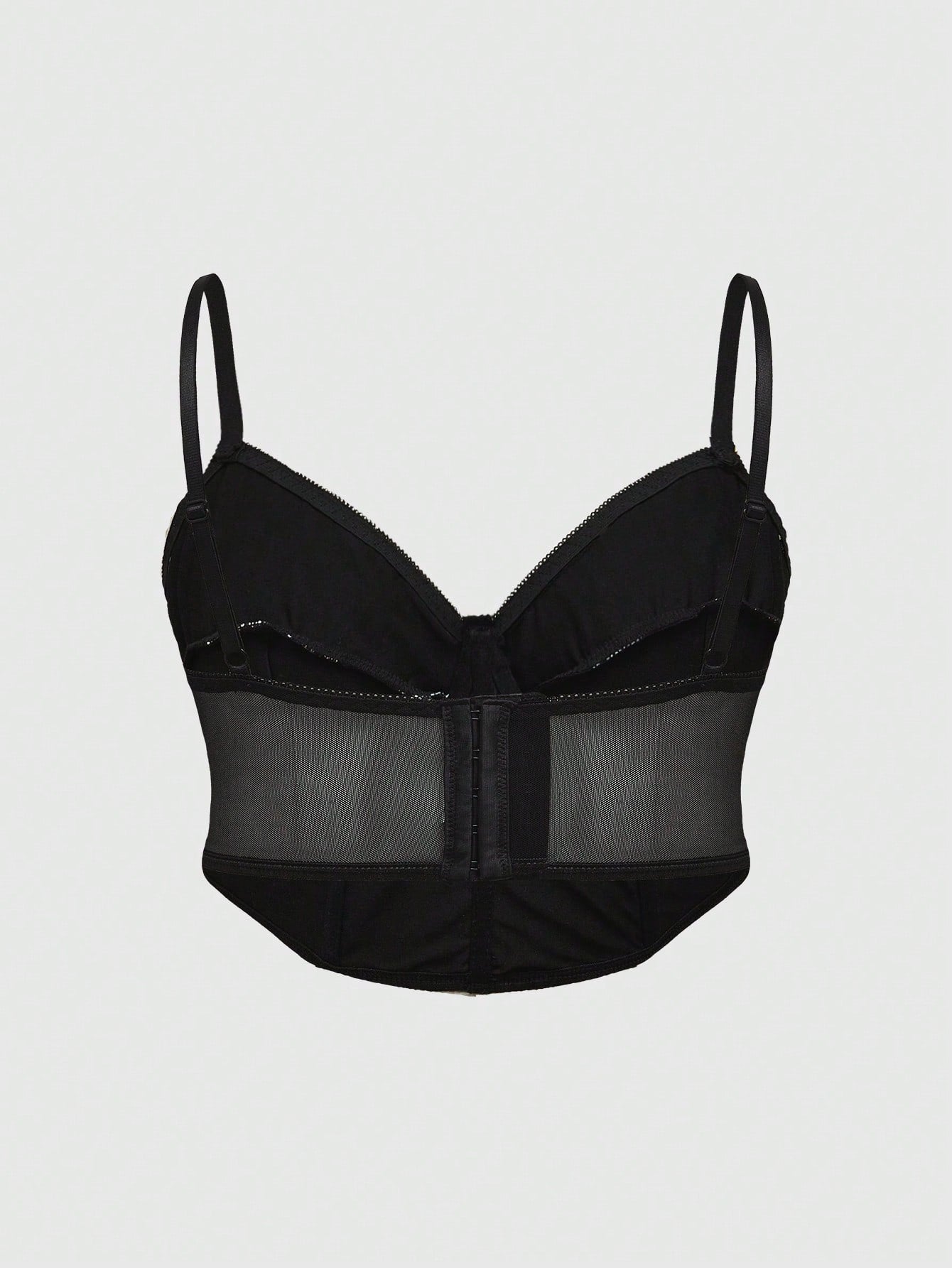 ROMWE Goth Camiseta interior floral y de mariposa bordada con malla de contraste elegante y de talla grande, ideal para verano