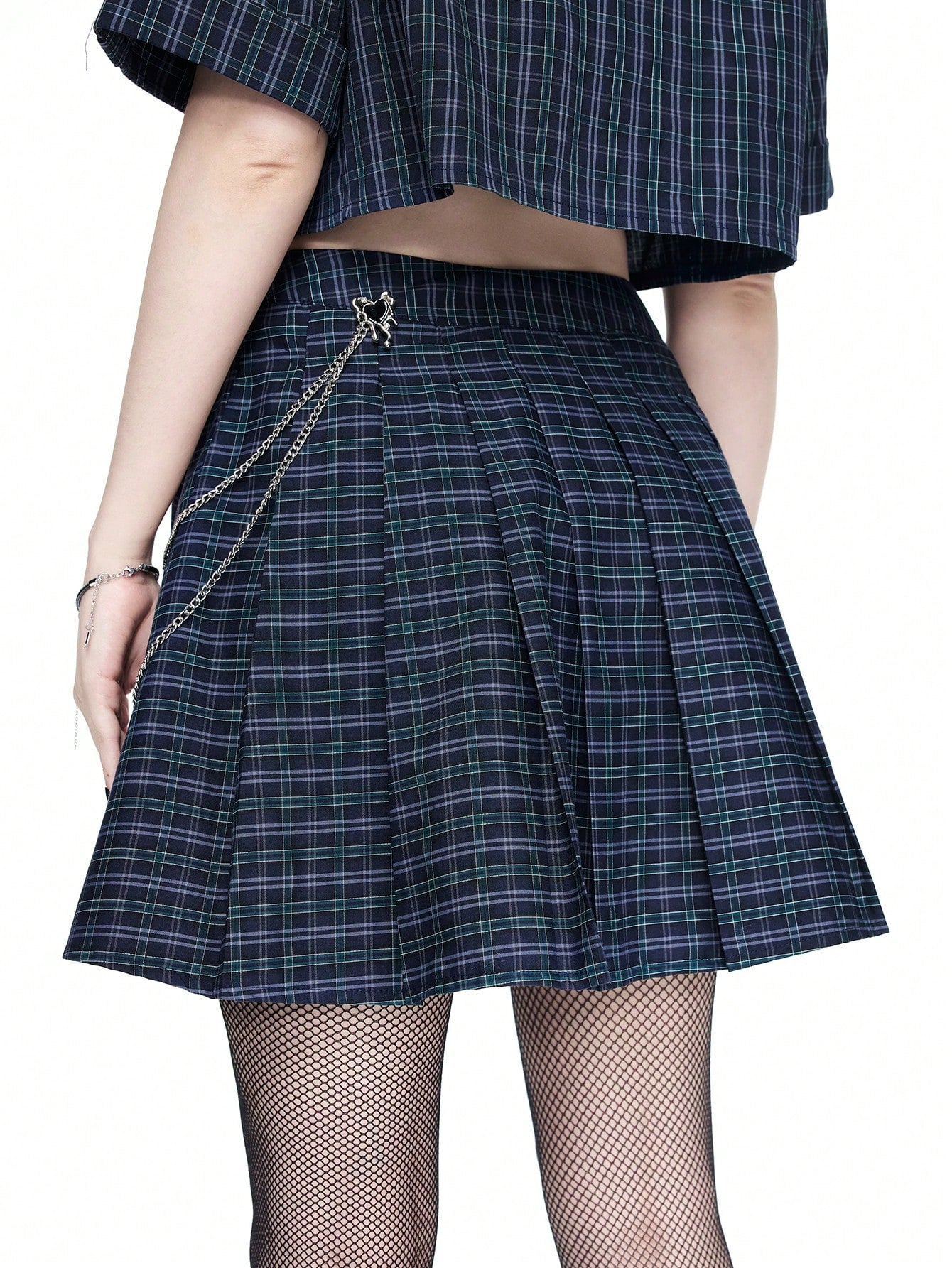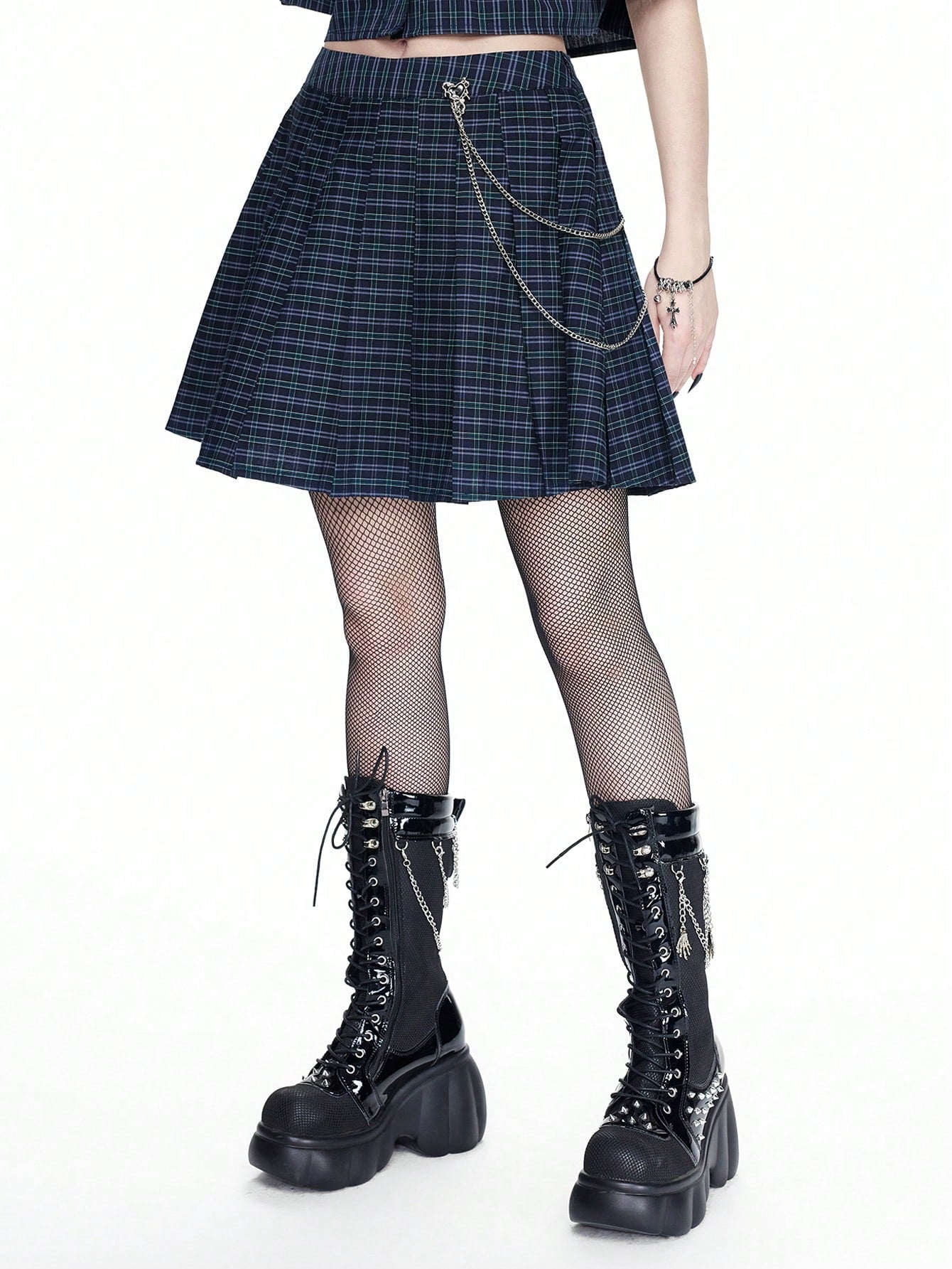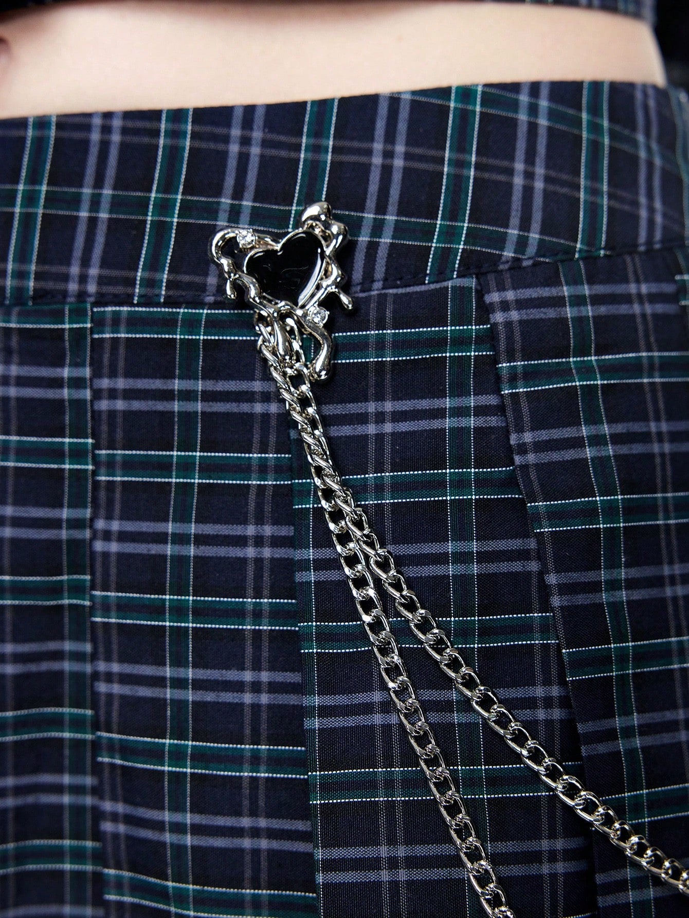 ROMWE Goth Falda plisada en A con decoración de cadena estilo gótico universitario