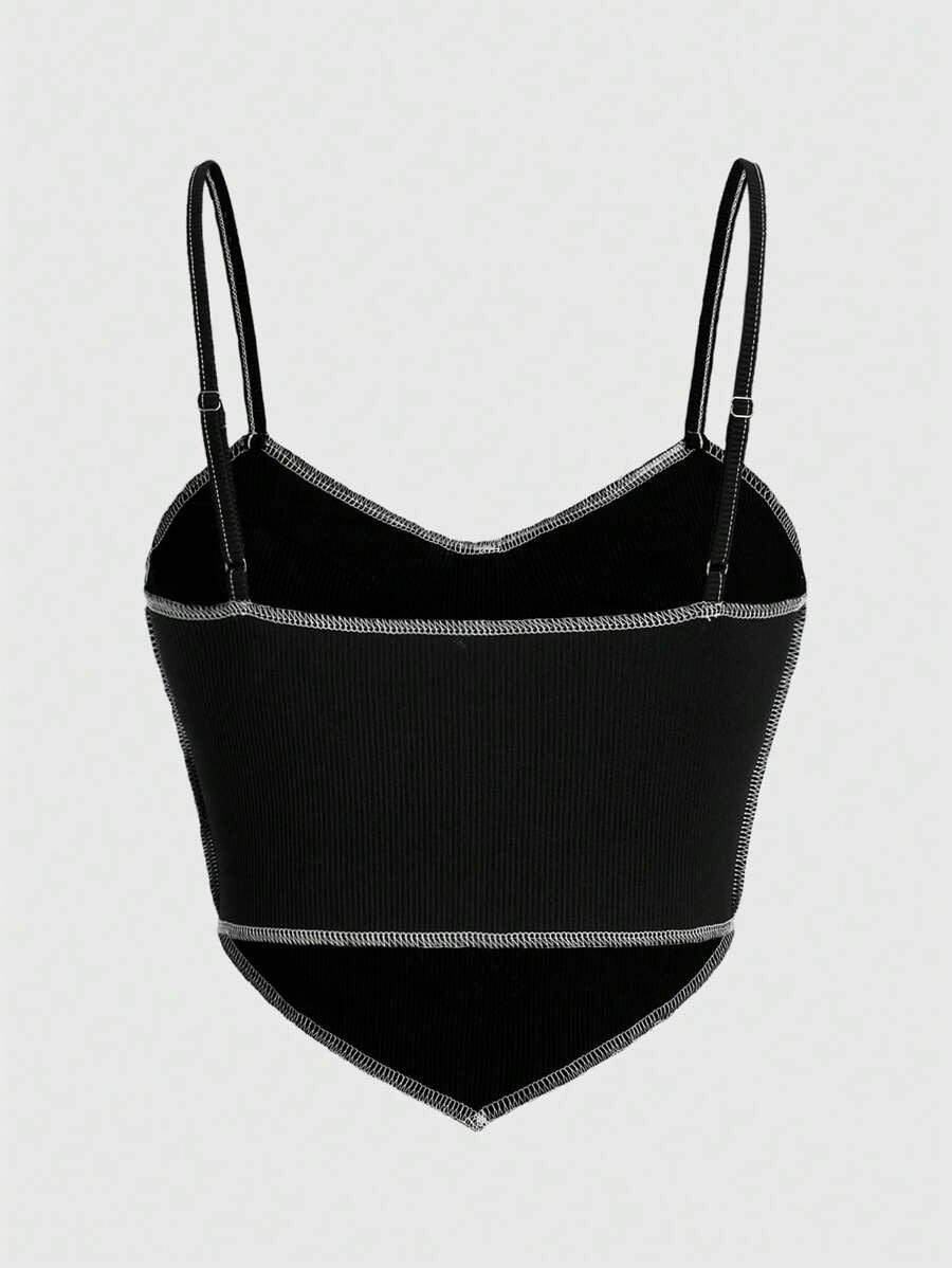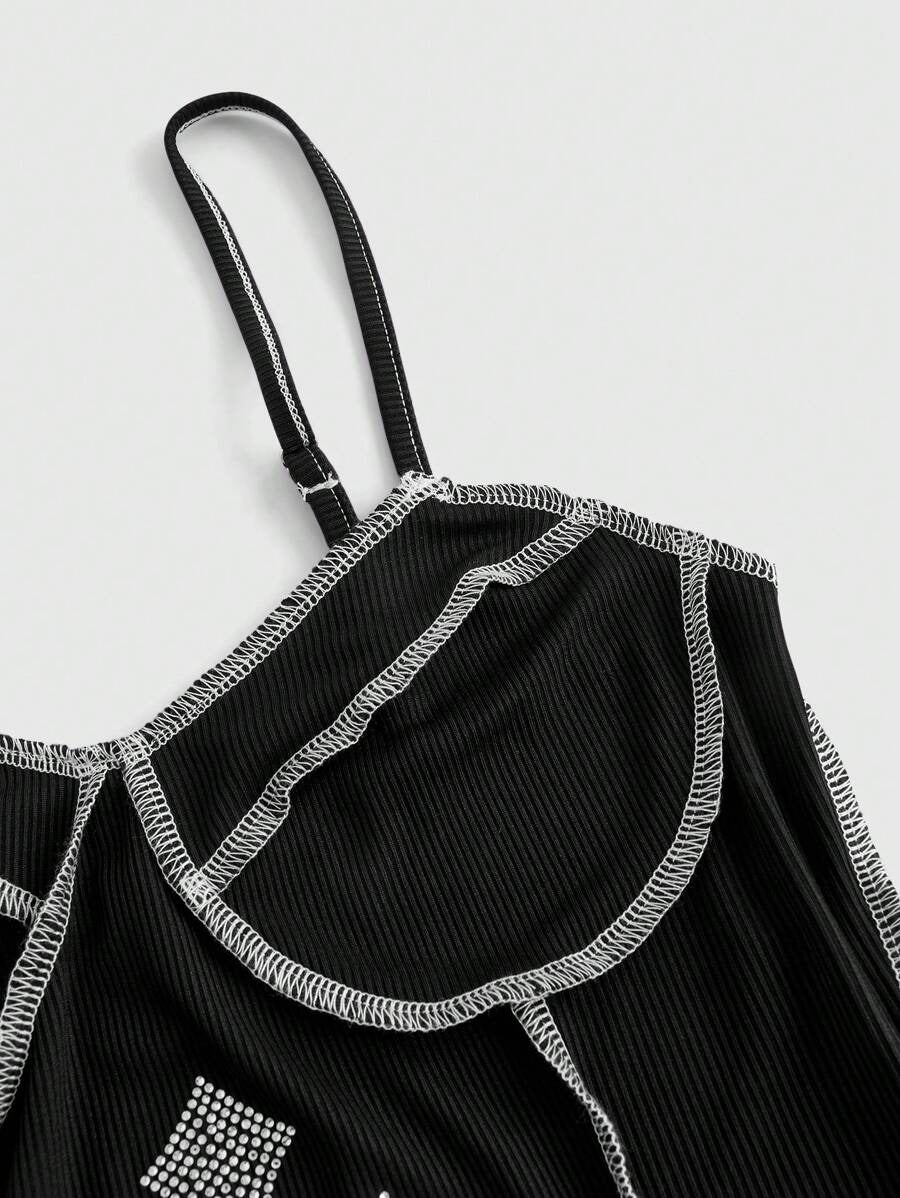 ROMWE Goth Tanque Con Diseño De Cruz Adornado Con Cristales De Imitación Y Costura A Contratono Mujer